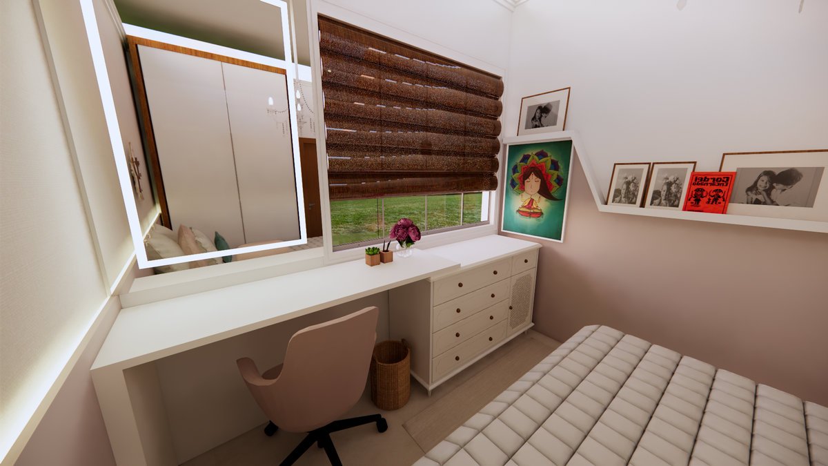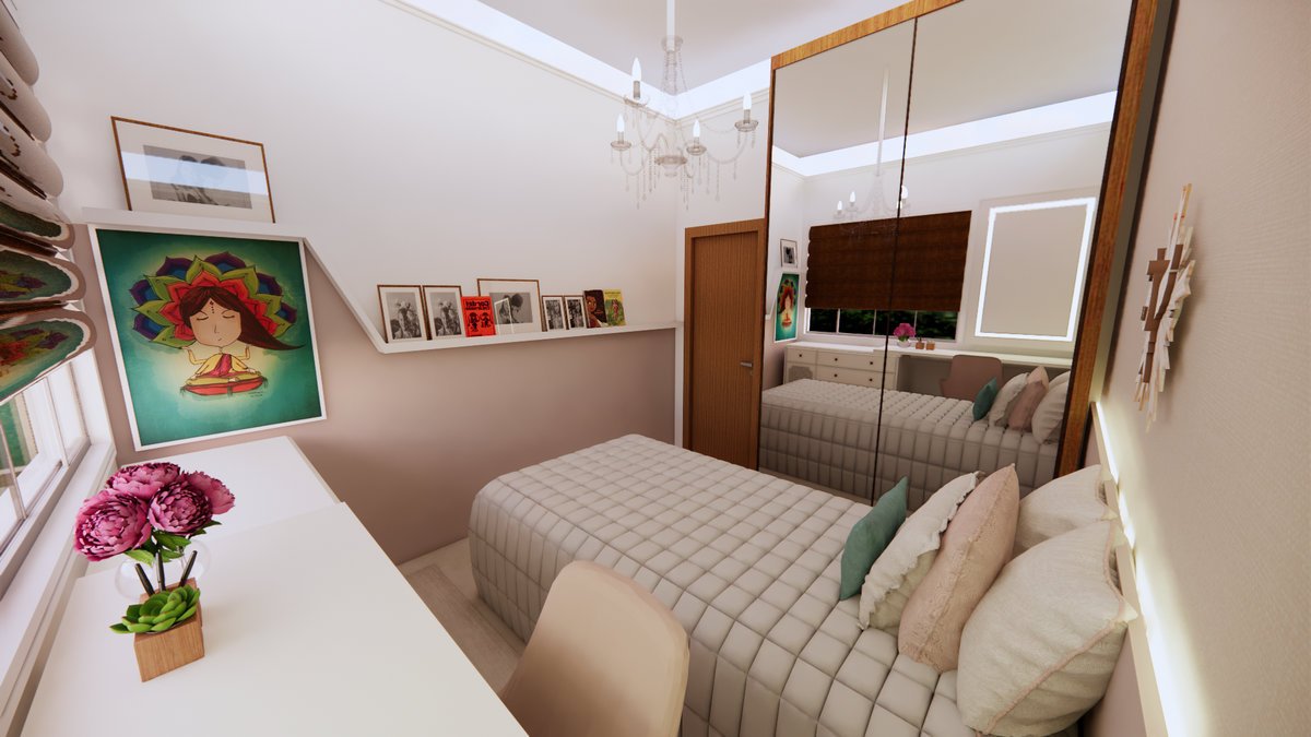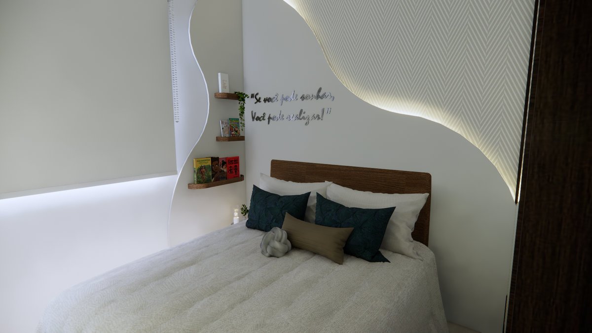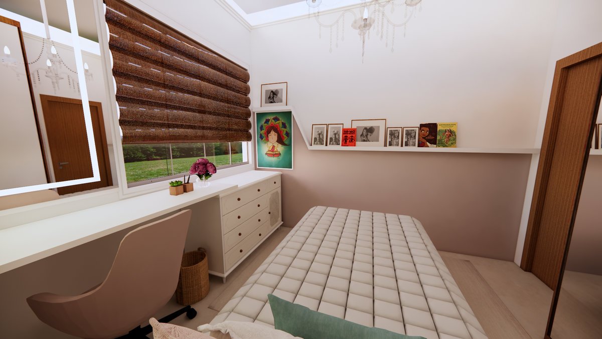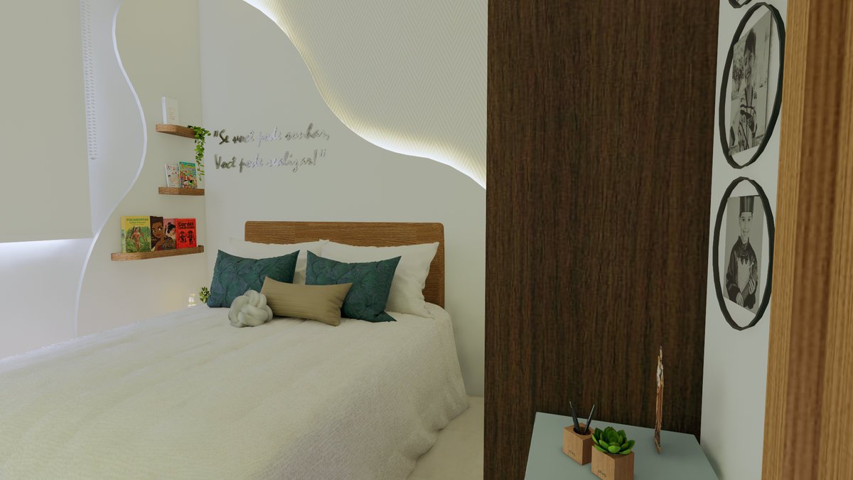 Além disso, também projetamos um escritório para o Arthur, que é professor de português e ministra aulas online. Pensamos em um ambiente confortável e bem organizado, que favorecesse a concentração e o bem-estar durante suas aulas e estudos.