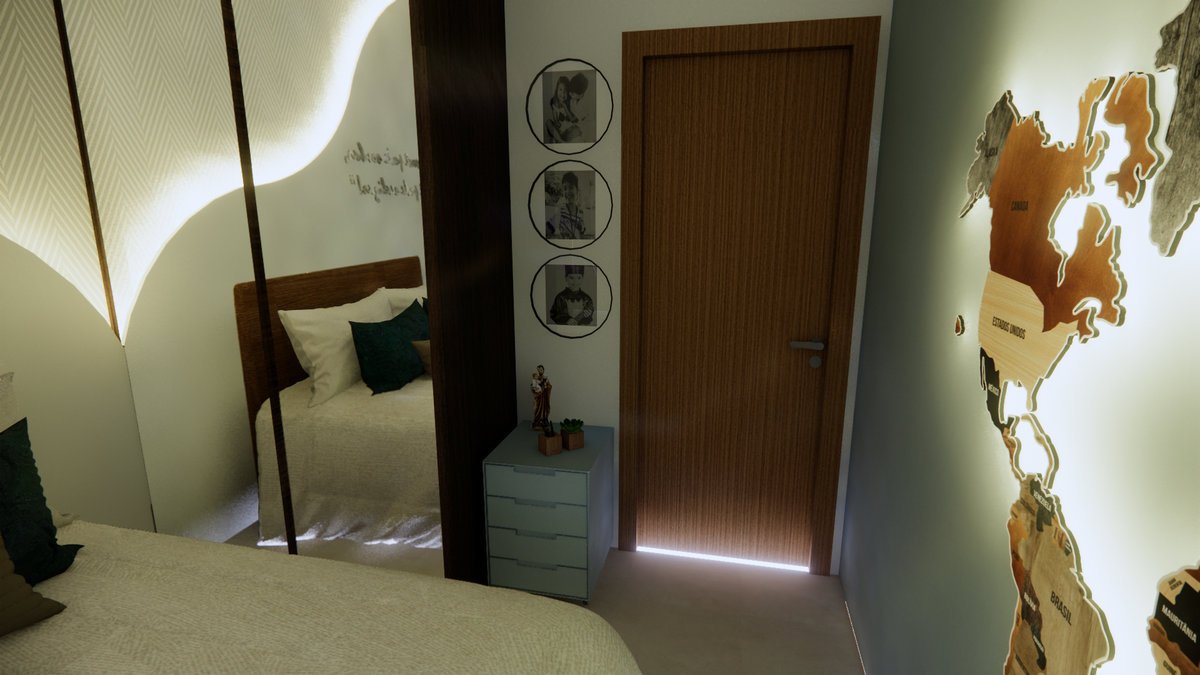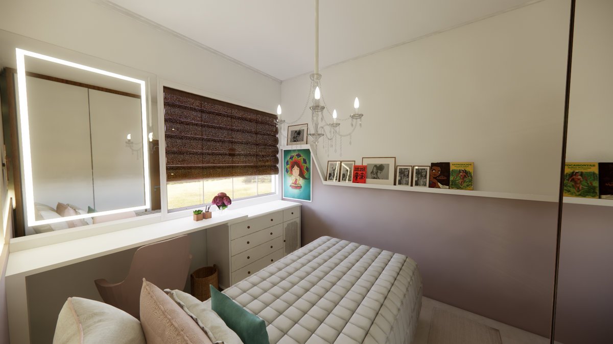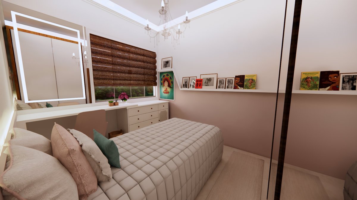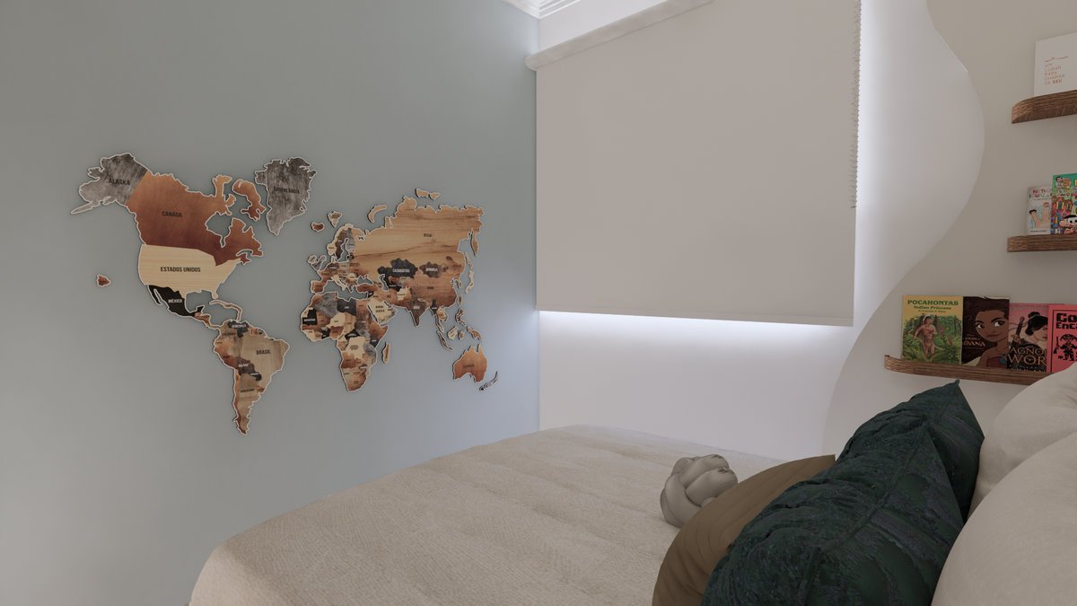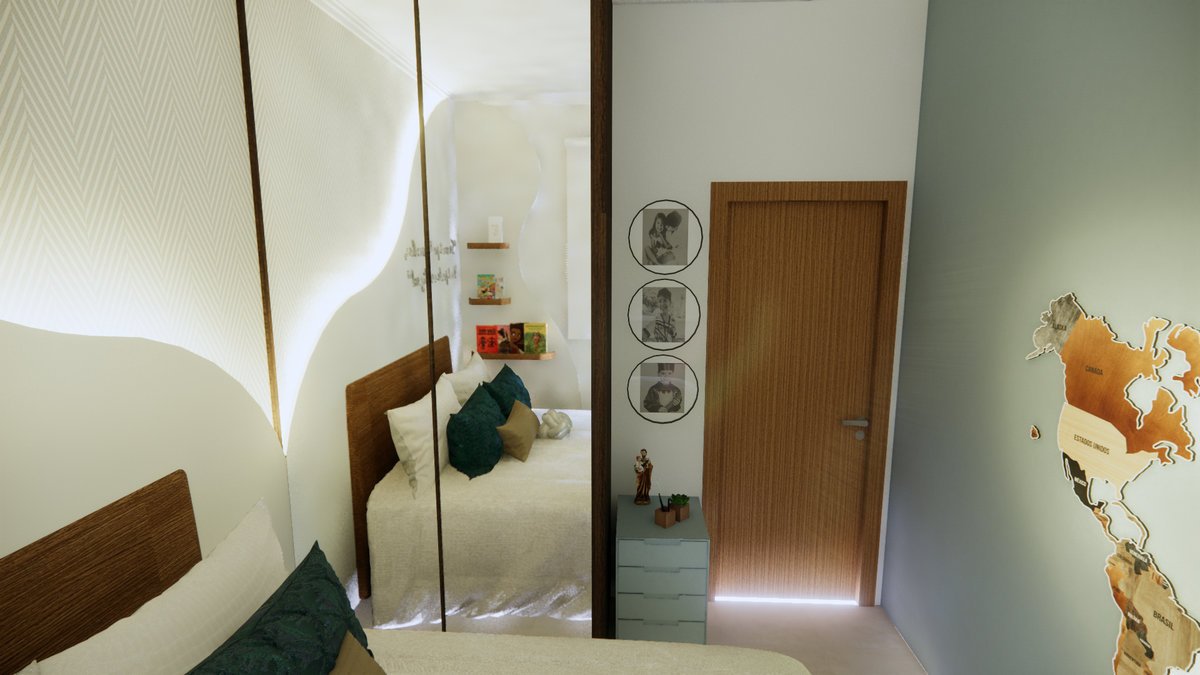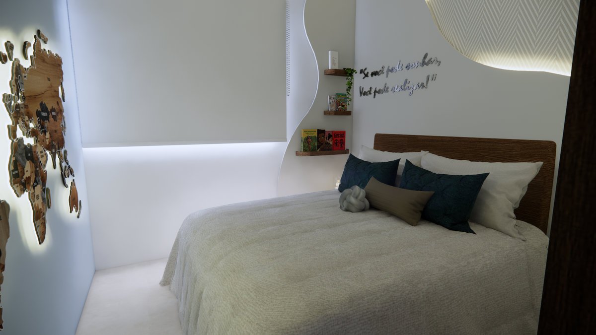 Além disso, também projetamos um escritório para o Arthur, que é professor de português e ministra aulas online. Pensamos em um ambiente confortável e bem organizado, que favorecesse a concentração e o bem-estar durante suas aulas e estudos.