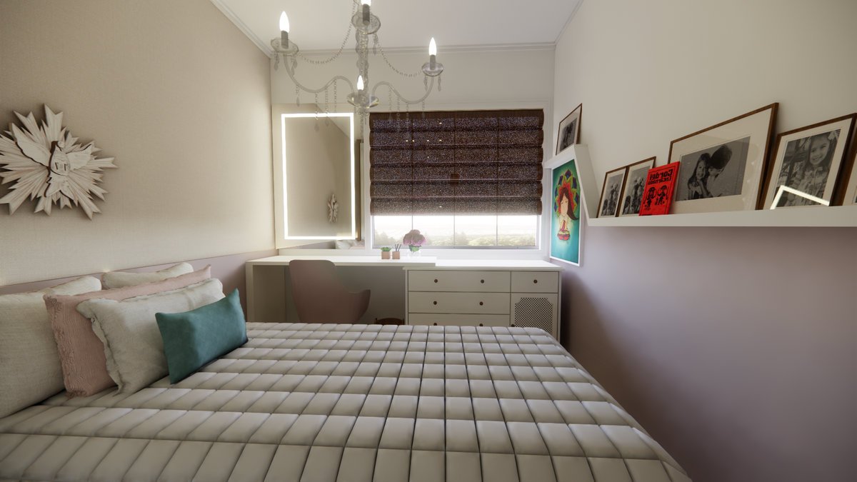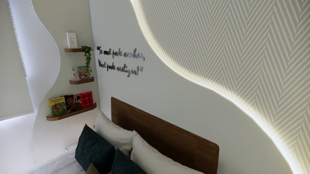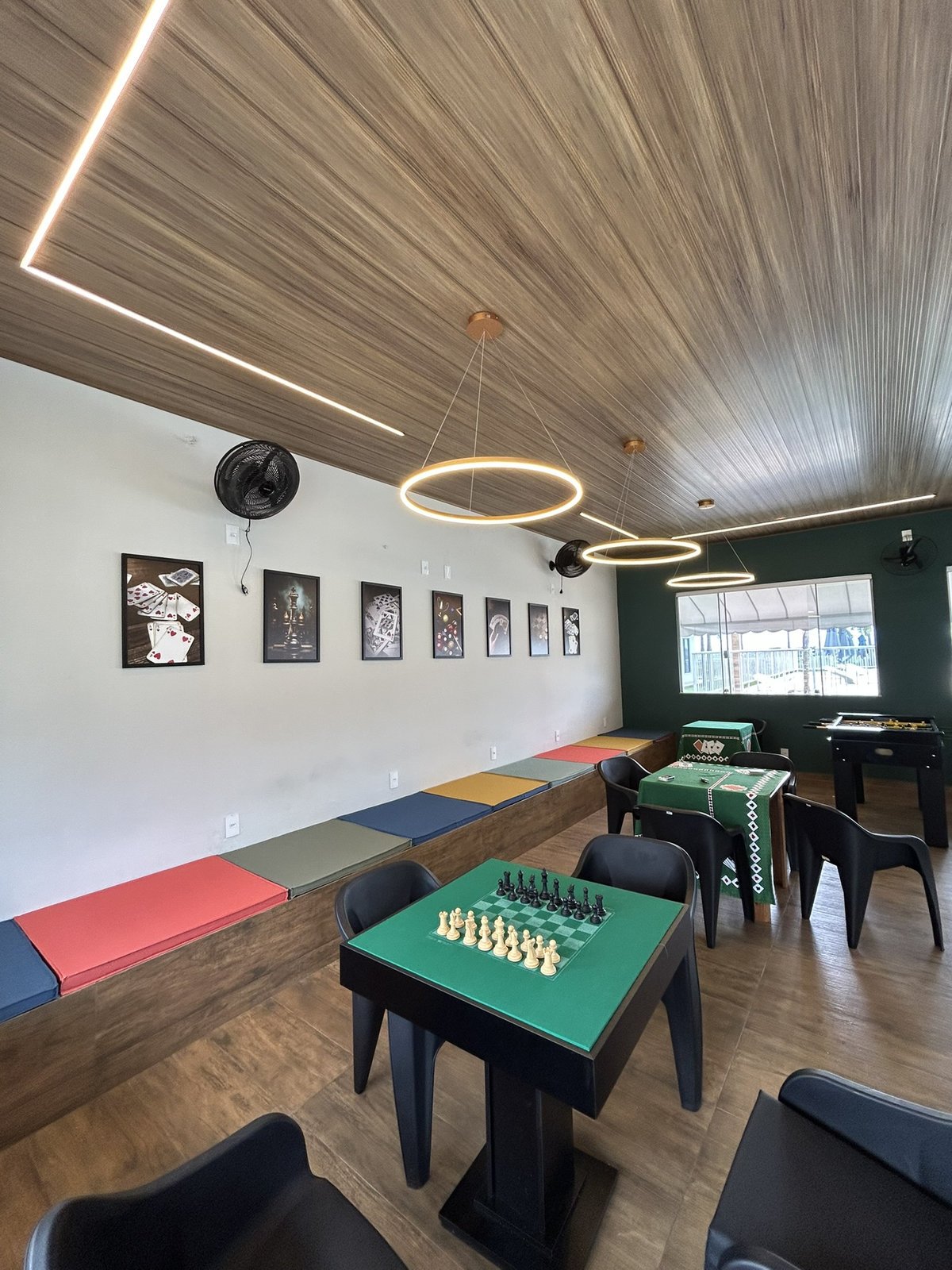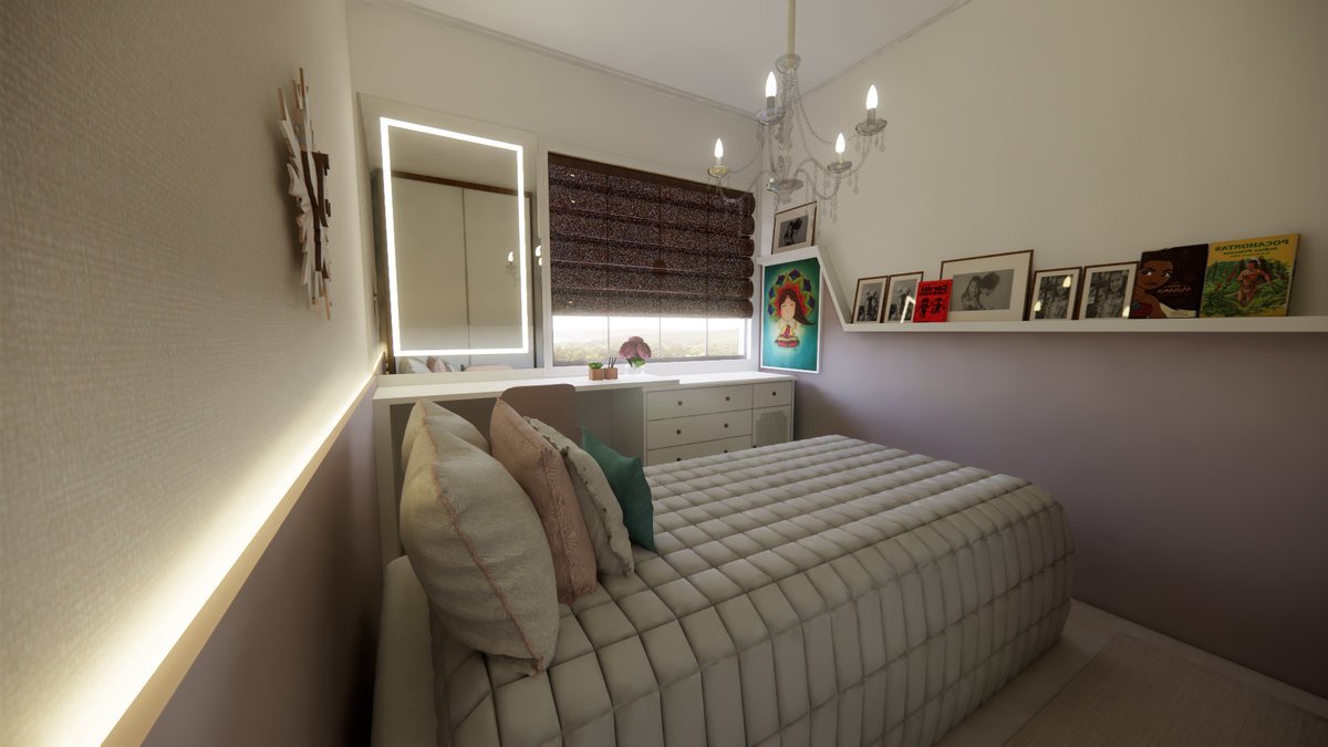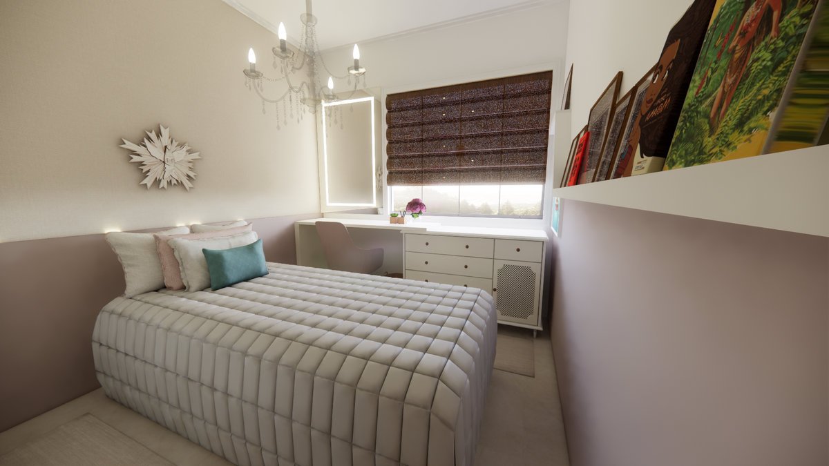 Além disso, também projetamos um escritório para o Arthur, que é professor de português e ministra aulas online. Pensamos em um ambiente confortável e bem organizado, que favorecesse a concentração e o bem-estar durante suas aulas e estudos.