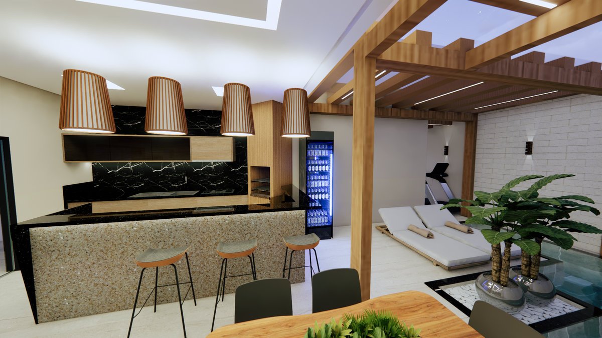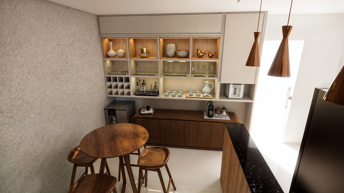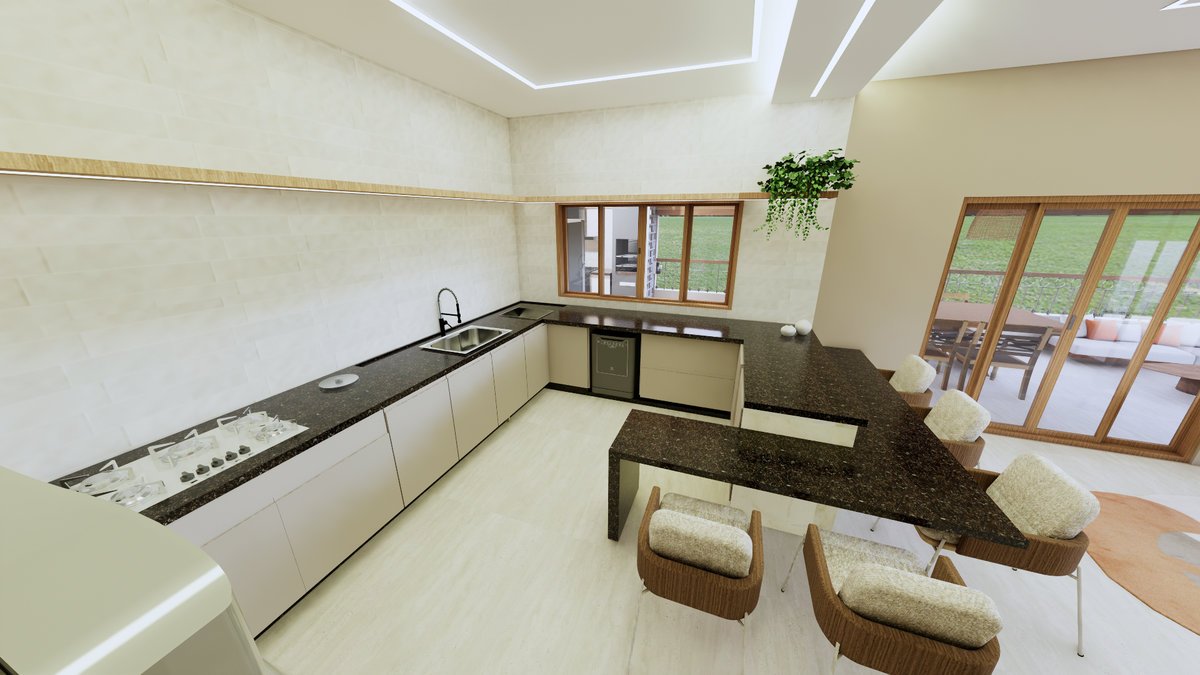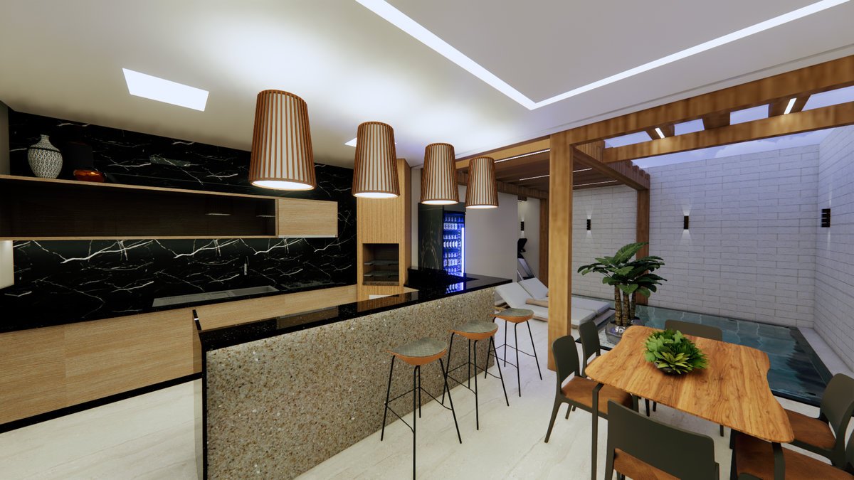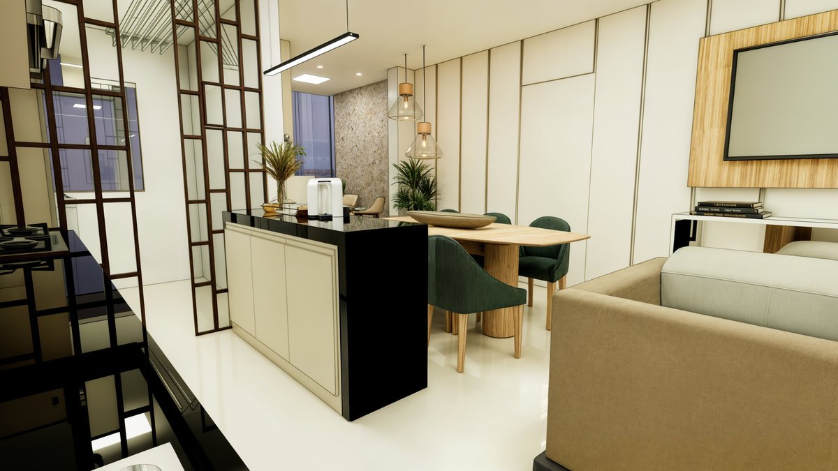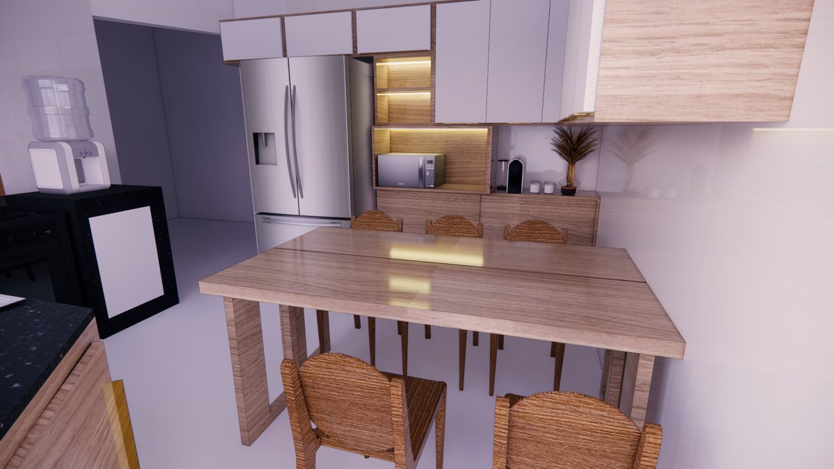 Aqui temos uma cozinha integrada com a sala, devidamente planejada para poder promover lindas e afetuosas memórias entre familiares e amigos!