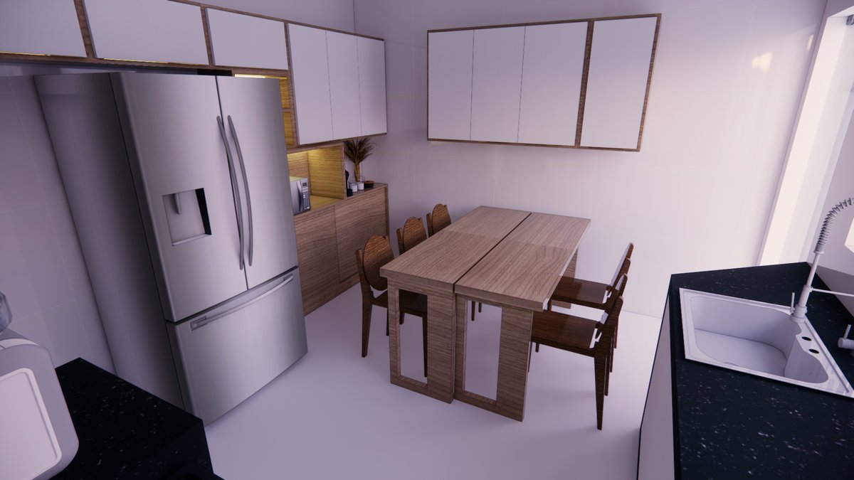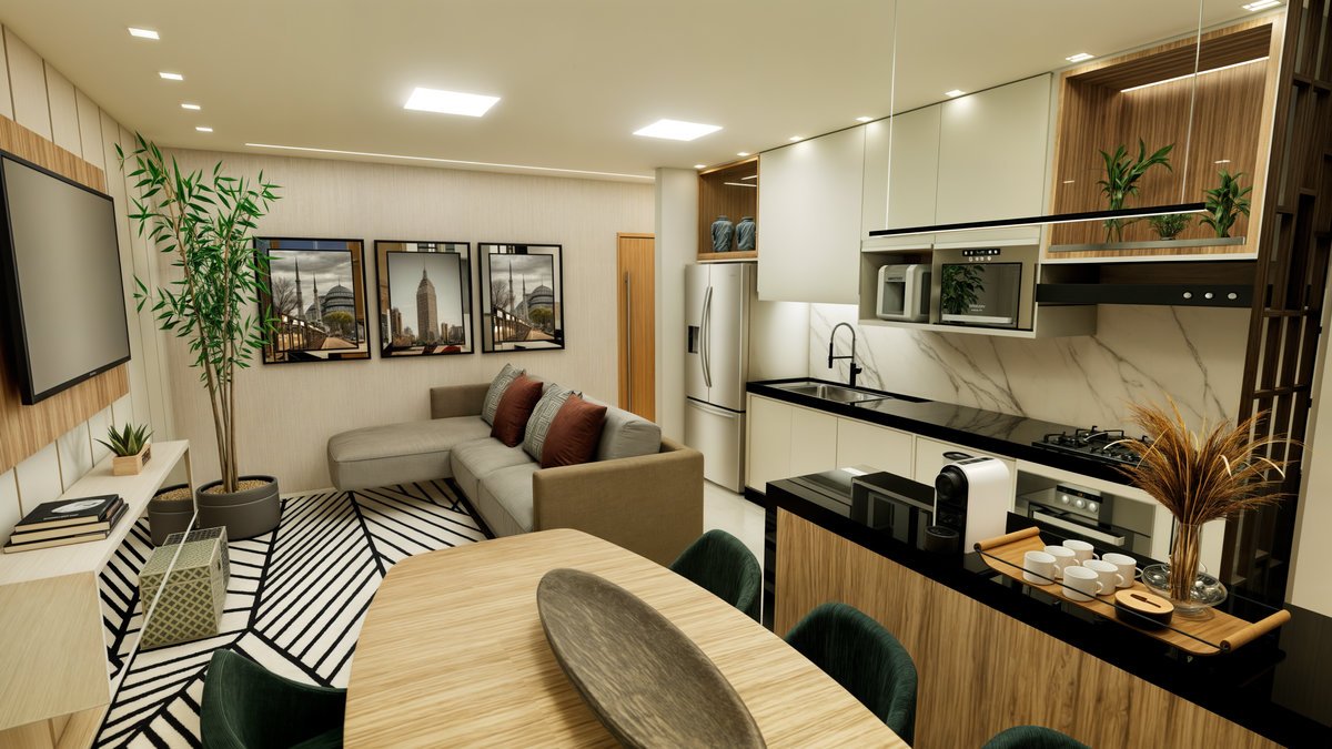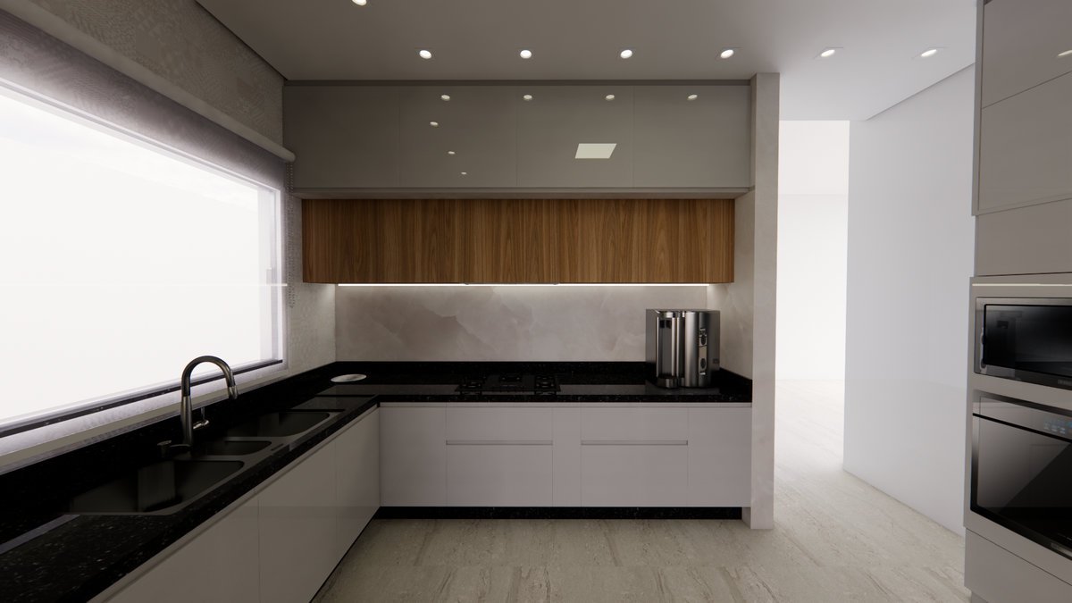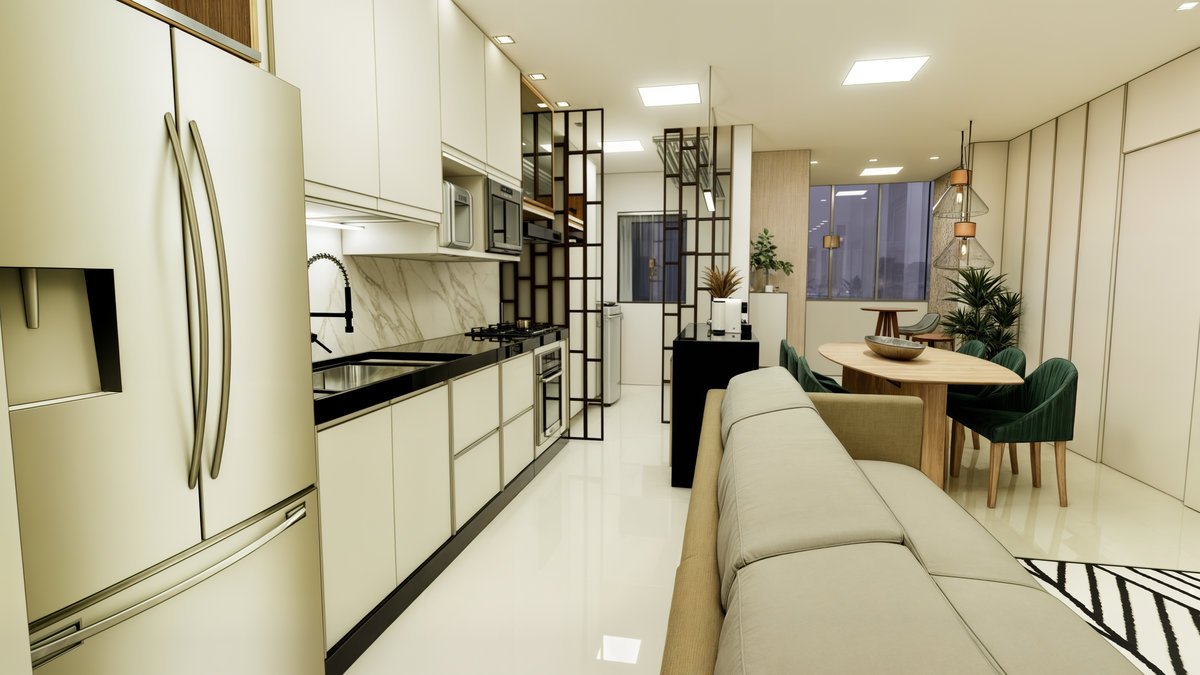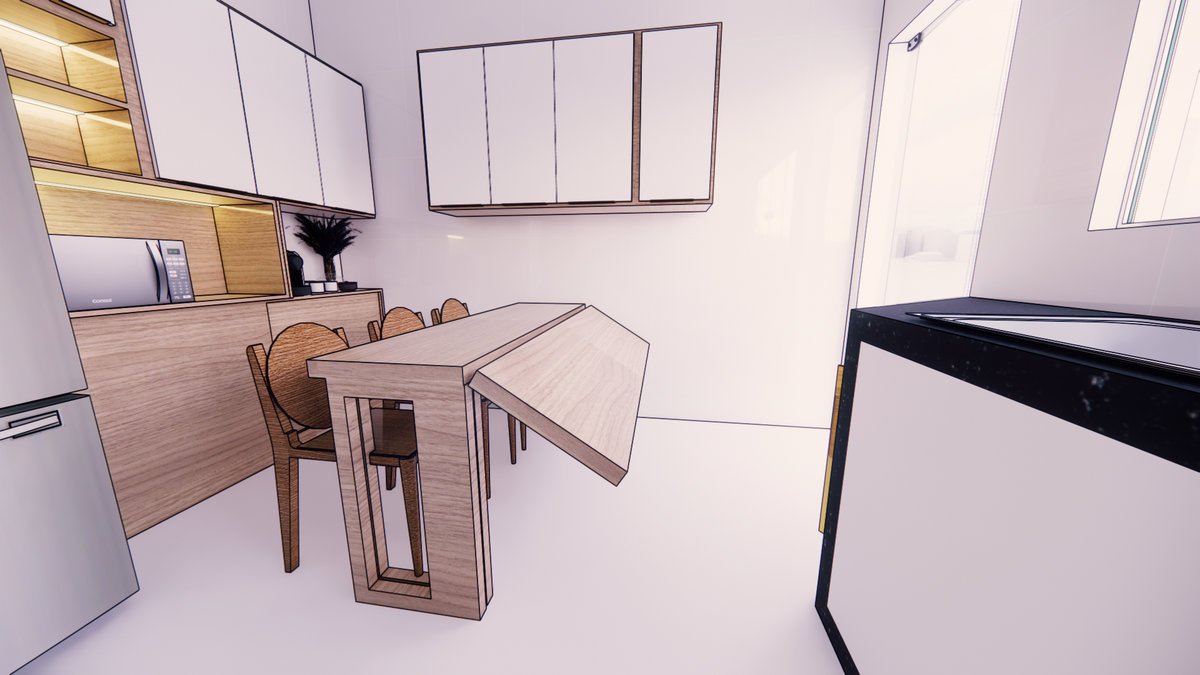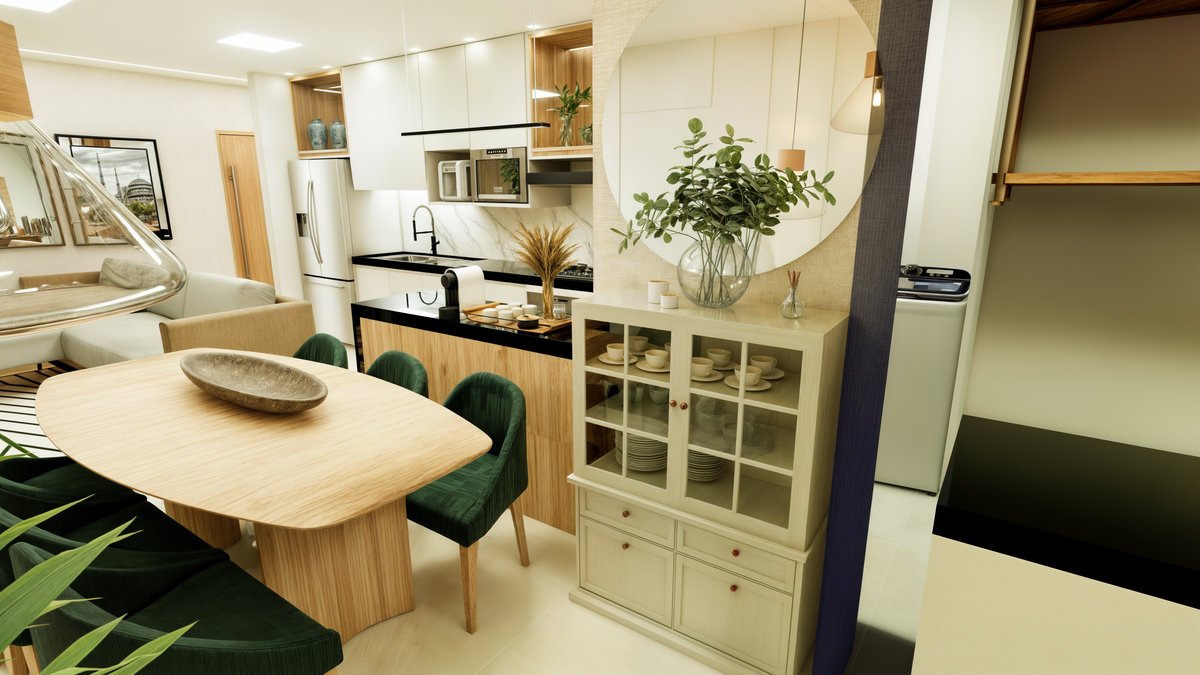 Aqui temos uma cozinha integrada com a sala, devidamente planejada para poder promover lindas e afetuosas memórias entre familiares e amigos!