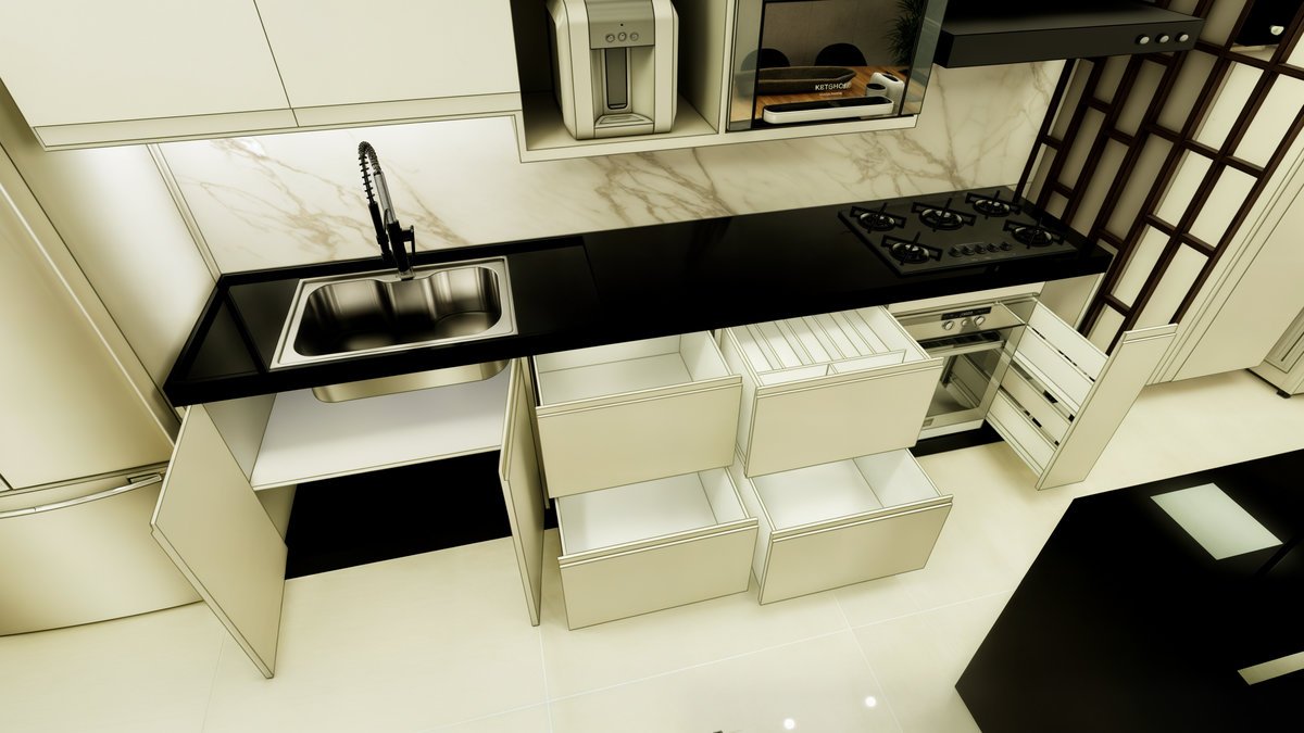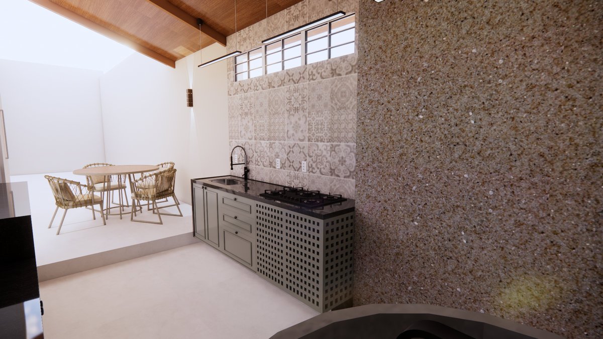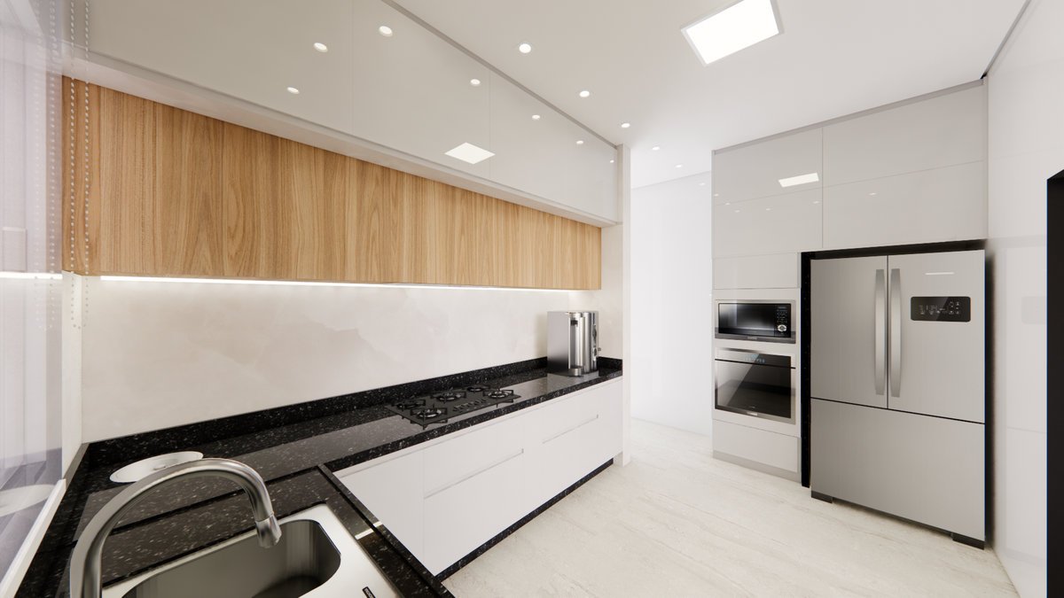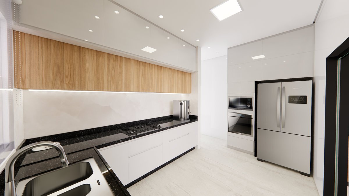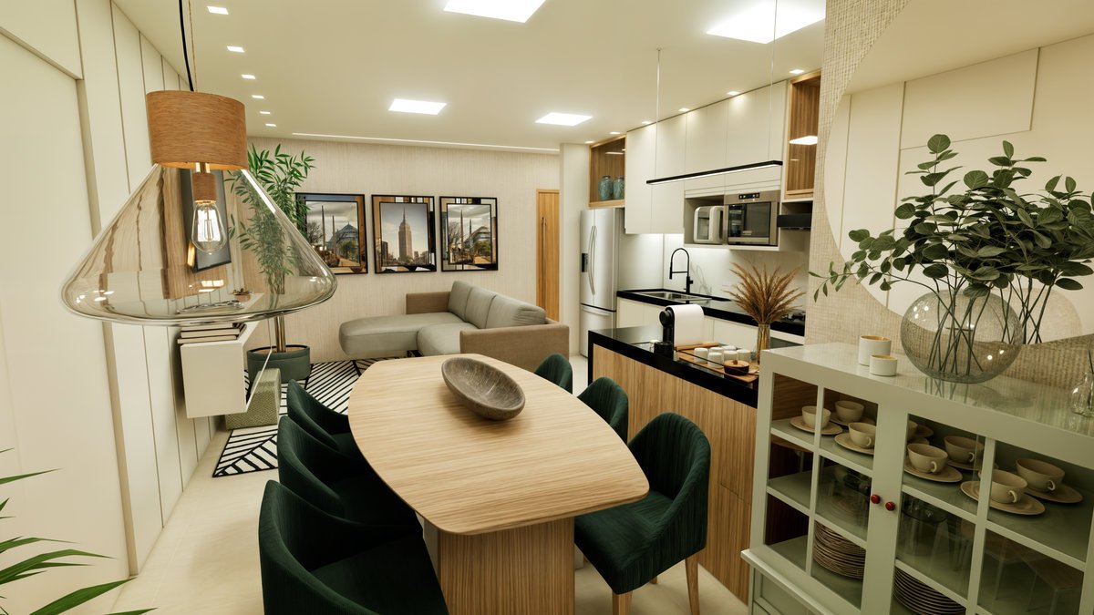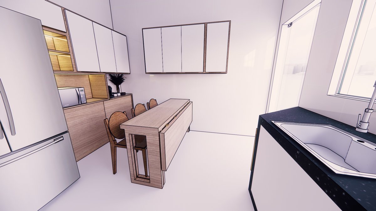 Aqui temos uma cozinha integrada com a sala, devidamente planejada para poder promover lindas e afetuosas memórias entre familiares e amigos!