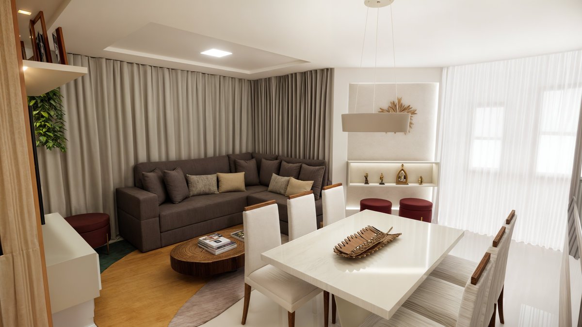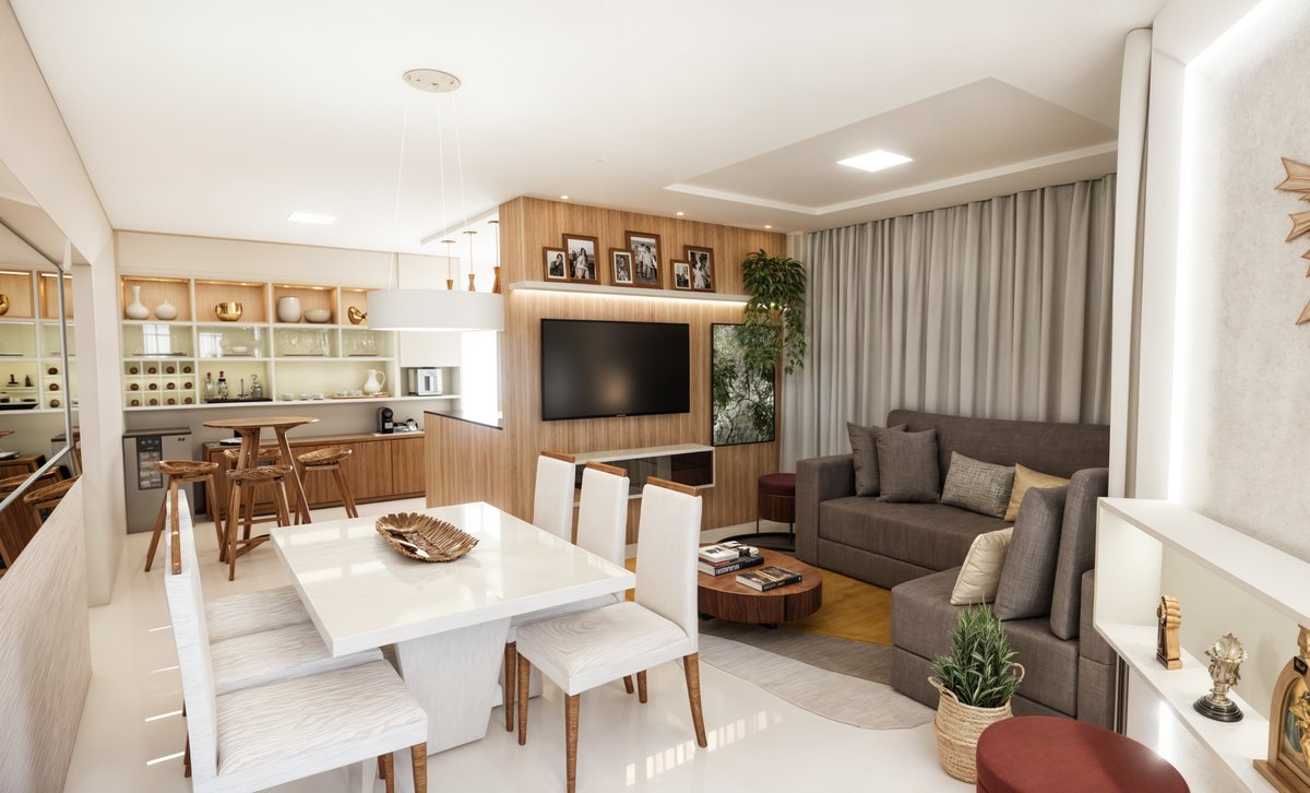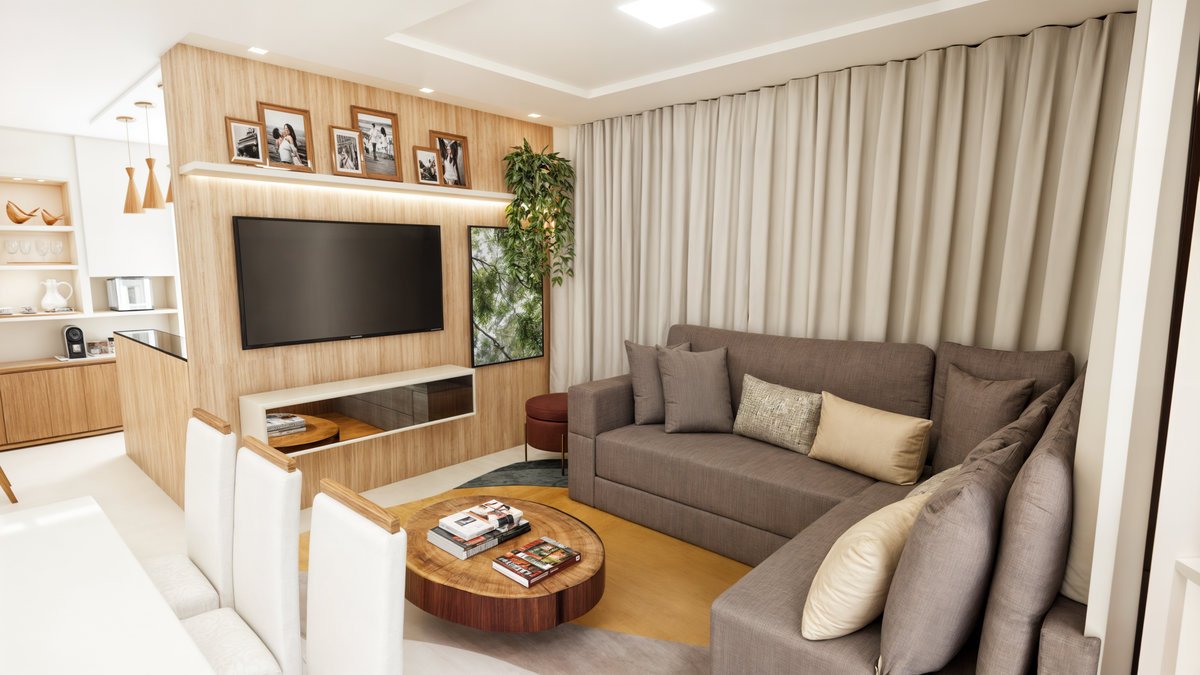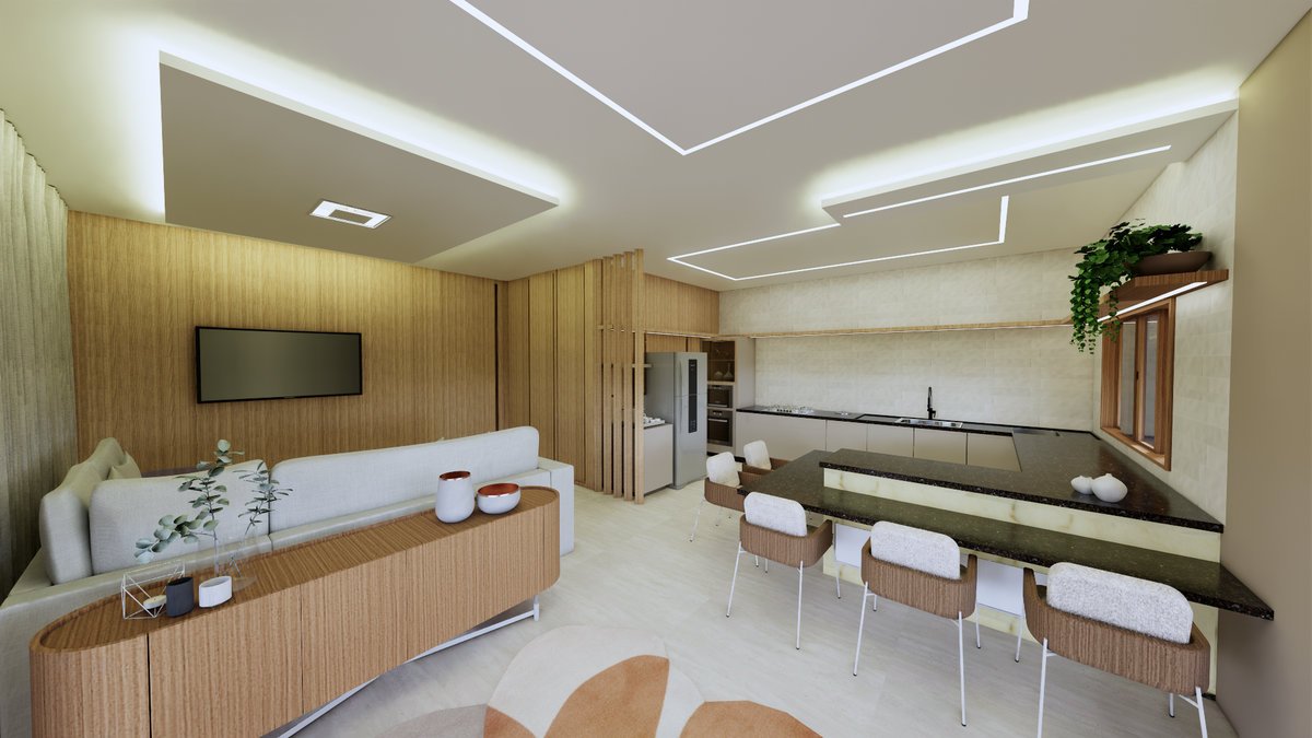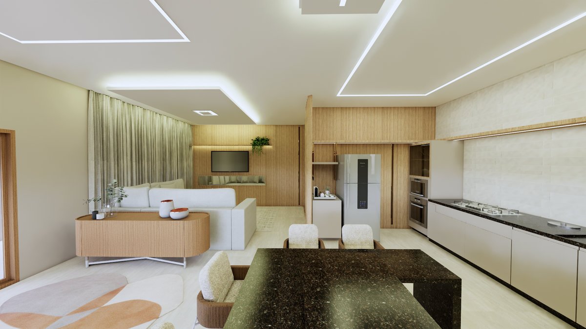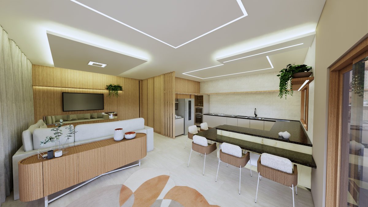Neste projeto de arquitetura de interiores, o casal nos procurou com o objetivo de criar um espaço que fosse ao mesmo tempo funcional, acolhedor e bem aproveitado. Eles nos contrataram para planejar uma sala integrada com a cozinha, lavanderia e espaço gourmet, promovendo uma circulação mais fluida e prática, ideal para o dia a dia e momentos de convivência.