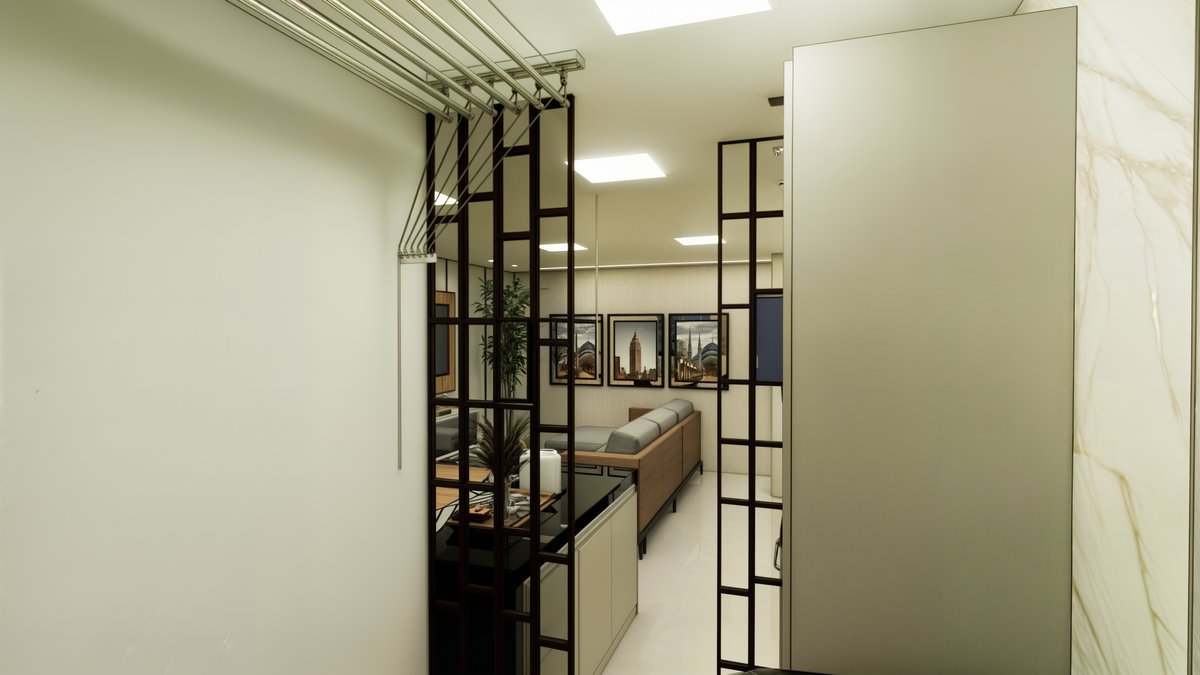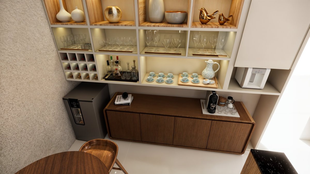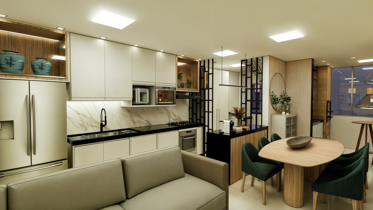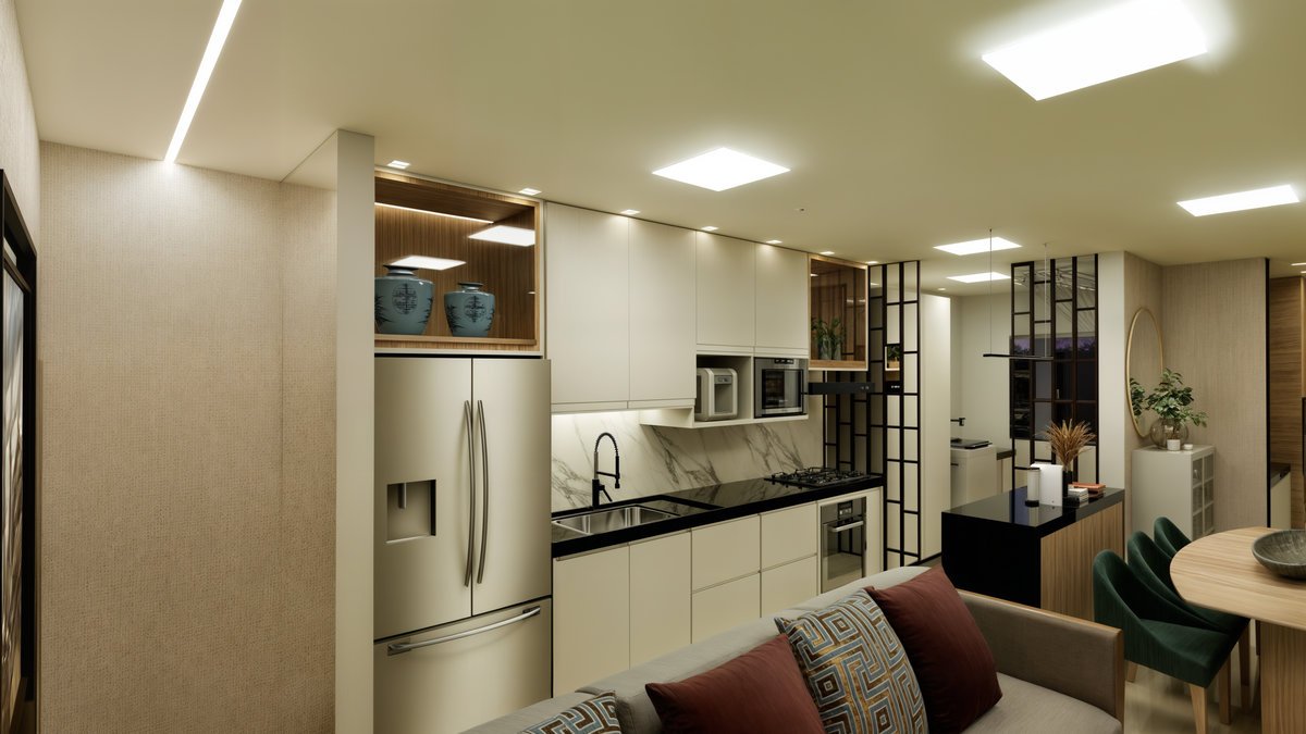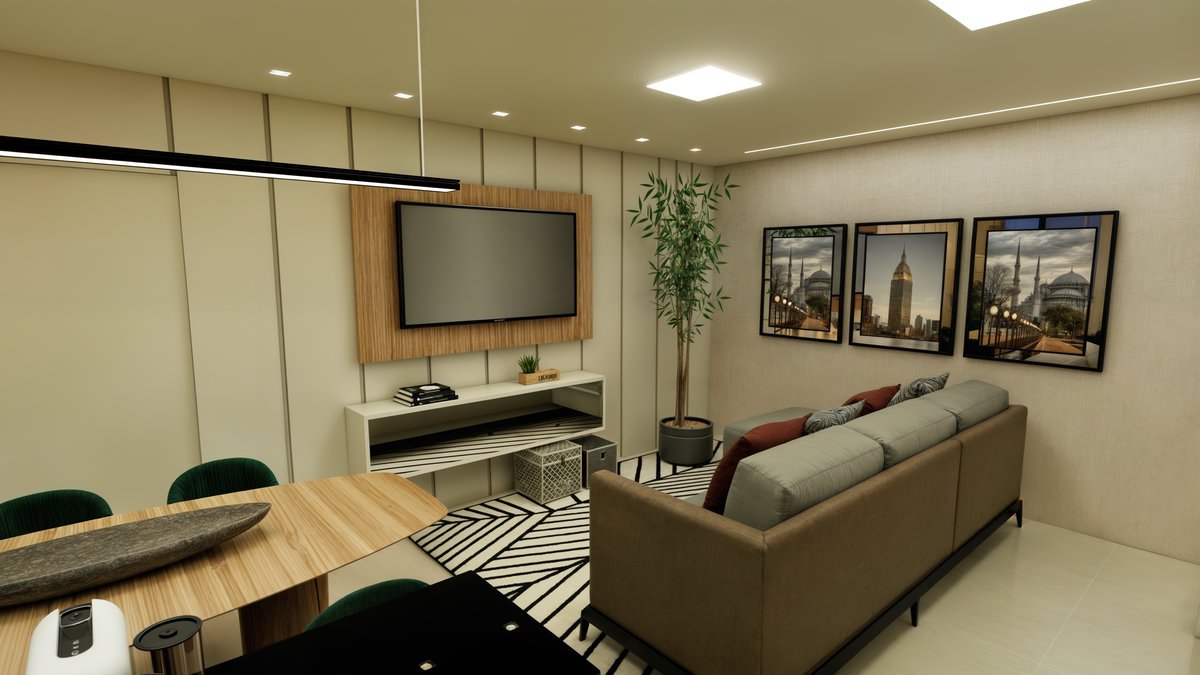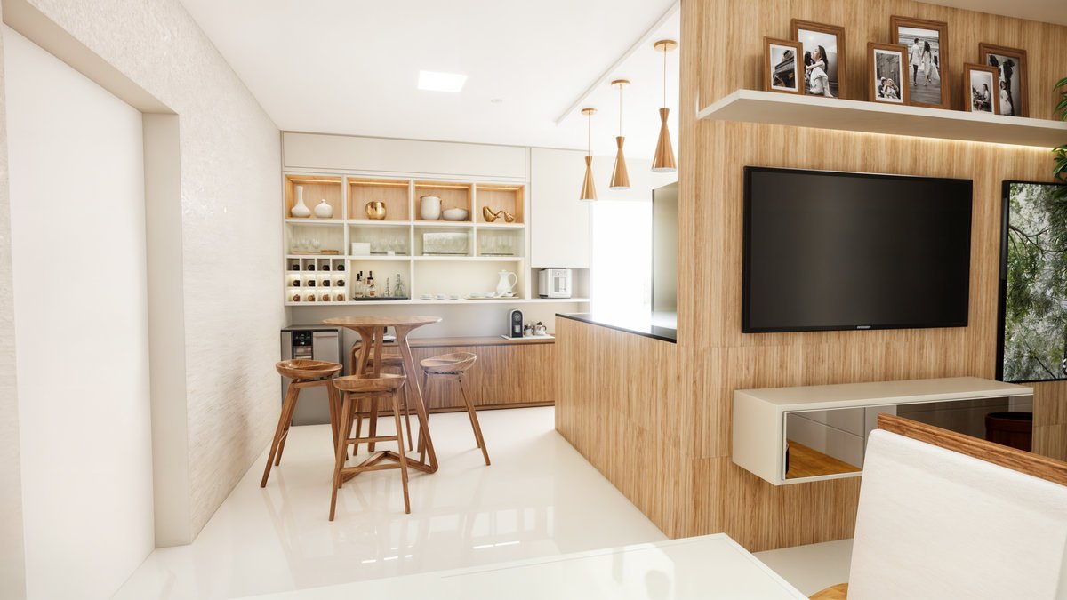 Neste projeto de arquitetura de interiores, o casal nos procurou com o objetivo de criar um espaço que fosse ao mesmo tempo funcional, acolhedor e bem aproveitado. Eles nos contrataram para planejar uma sala integrada com a cozinha, lavanderia e espaço gourmet, promovendo uma circulação mais fluida e prática, ideal para o dia a dia e momentos de convivência.