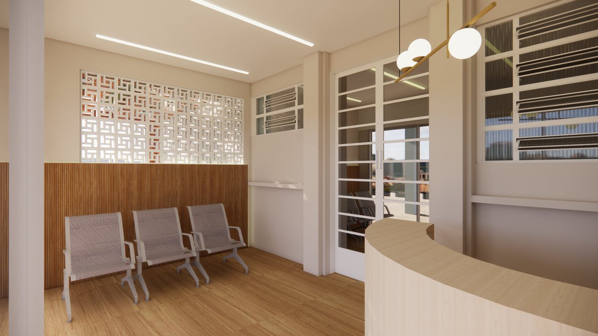 Este espaço era, originalmente; composto por duas salas. Para otimizar a funcionalidade, dividimos em 3 ambientes, usando a divisora em dry-wall, criando uma recepção, uma ante-sala para o primeiro atendimento e a sala de procedimentos.