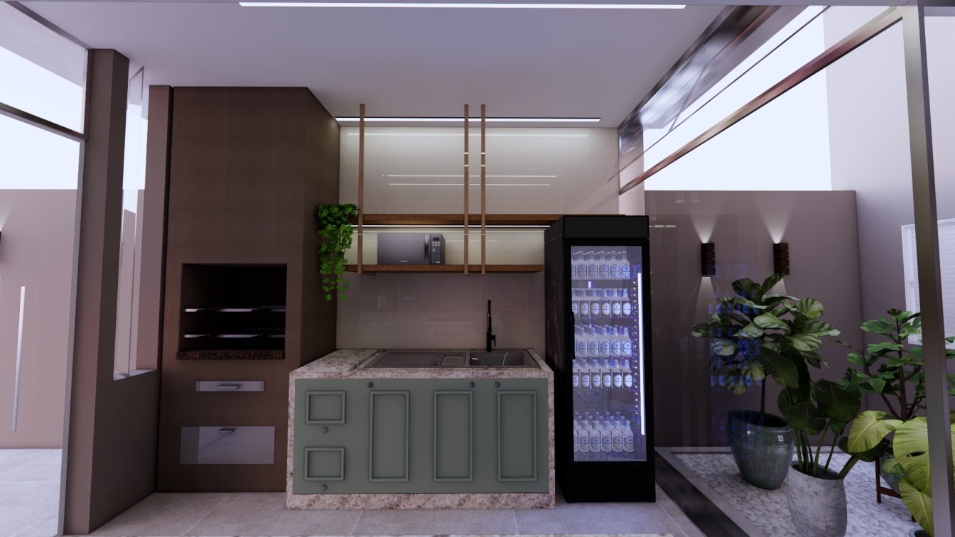 Uma área de lazer, com espaço gourmet, compacta e cheia de personalidade!
