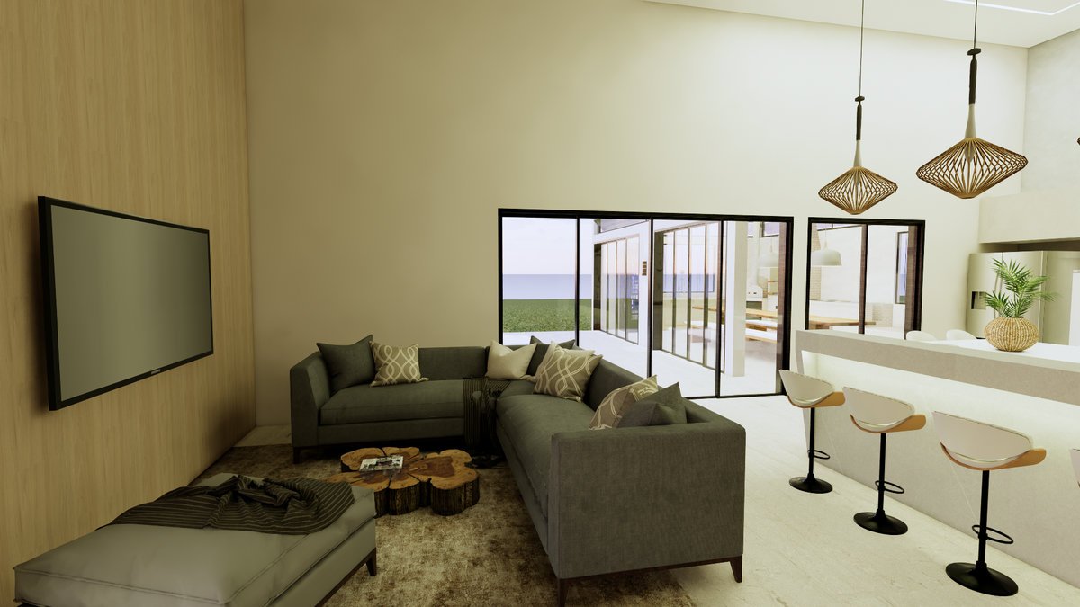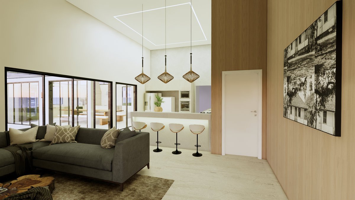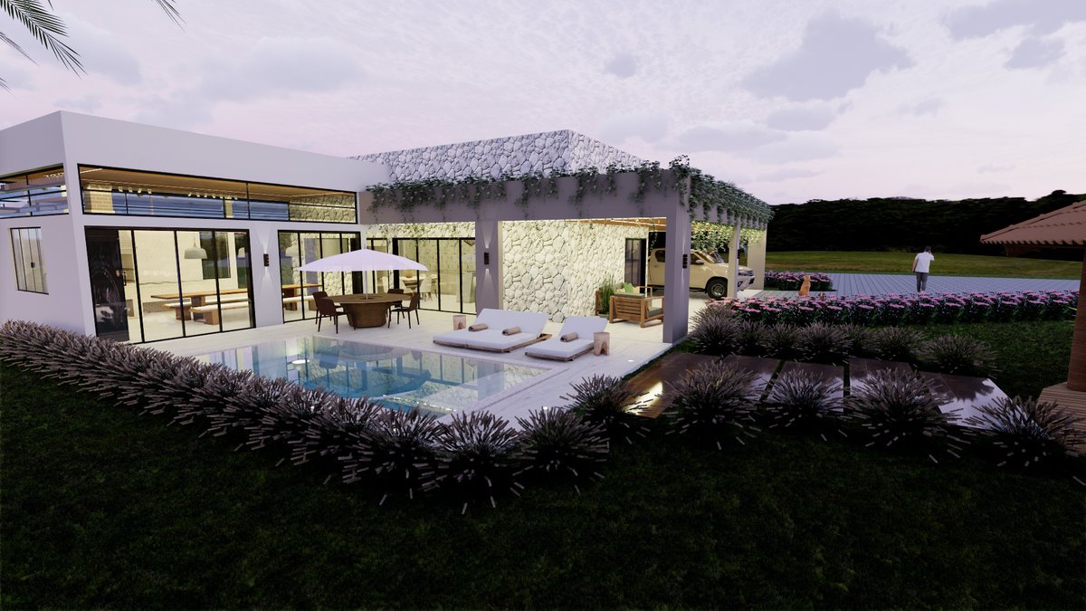 O cliente me procurou a fim de solucionar um espaço funcional e acolhedor, onde pudesse passar os finais de semana com a família, por meio de uma arquitetura contemporânea, com telhado embutido e o mais integrado à natureza possível.