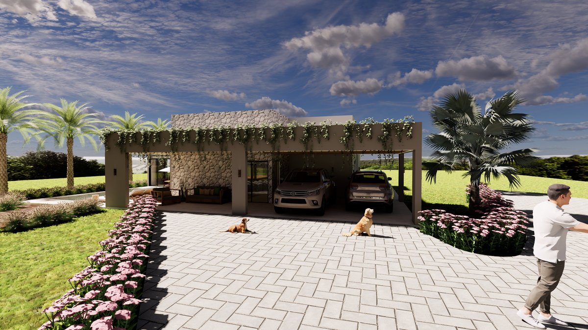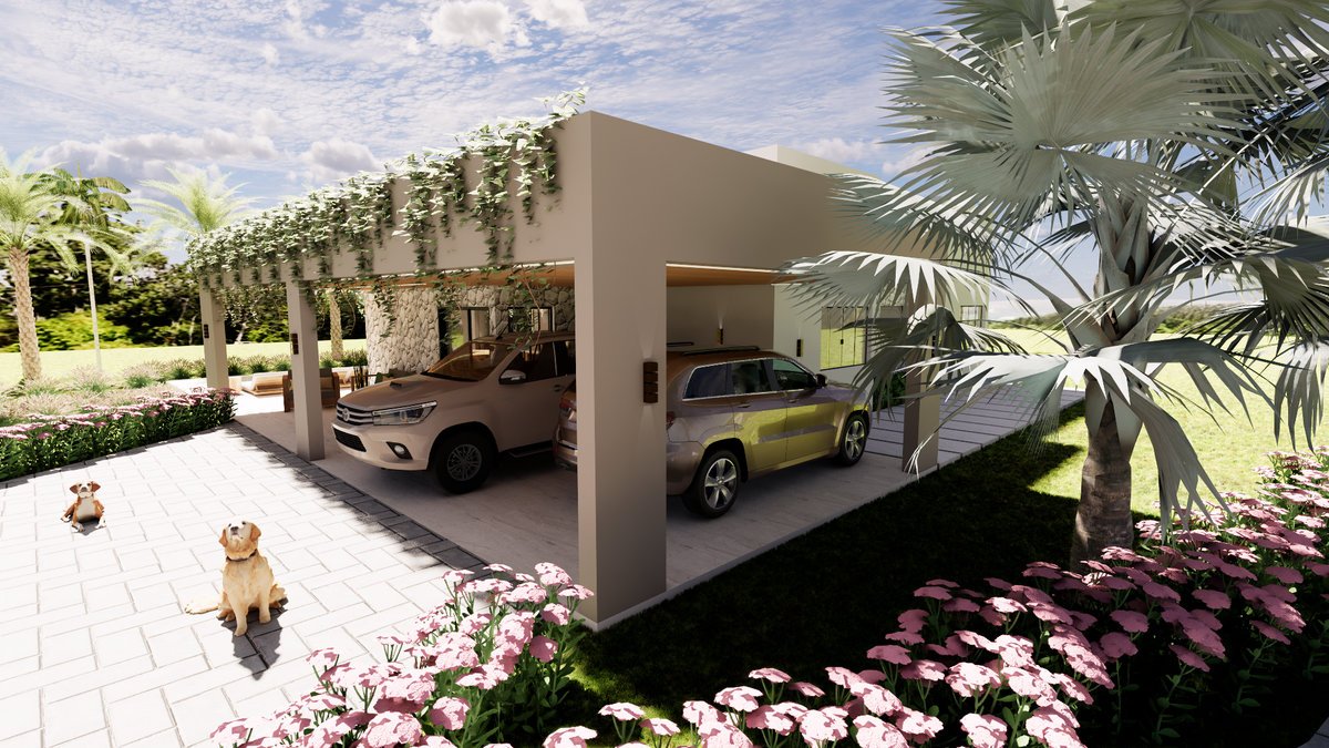 Na platibanda da fachada frontal, acrescentamos uma floreira, para que sejam plantaras trepadeiras e essas também permitam a conexão com a natureza ao redor.