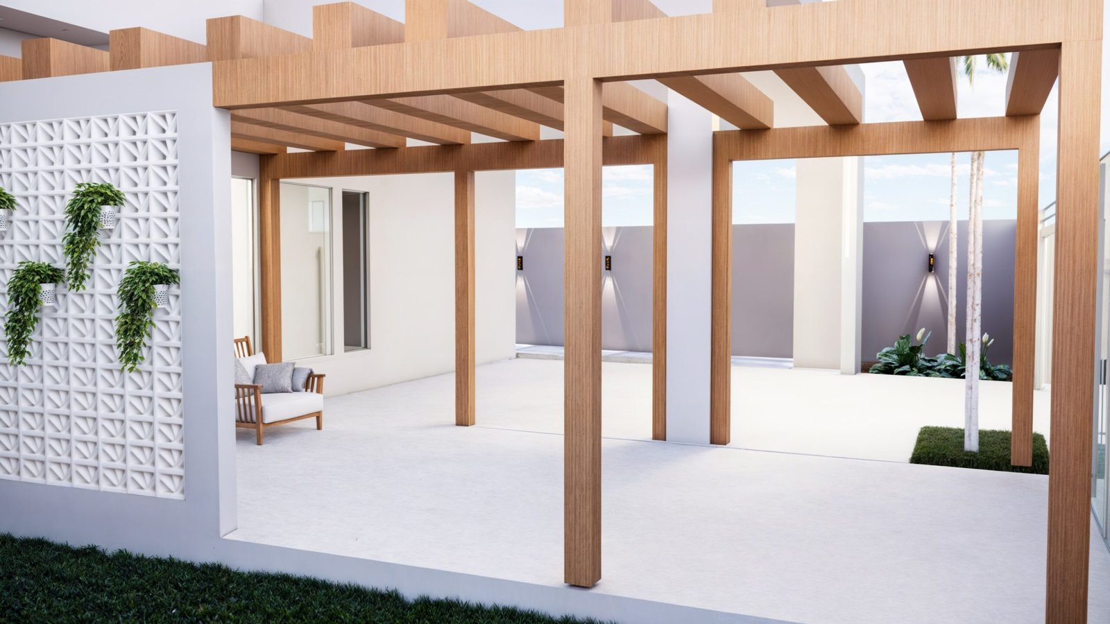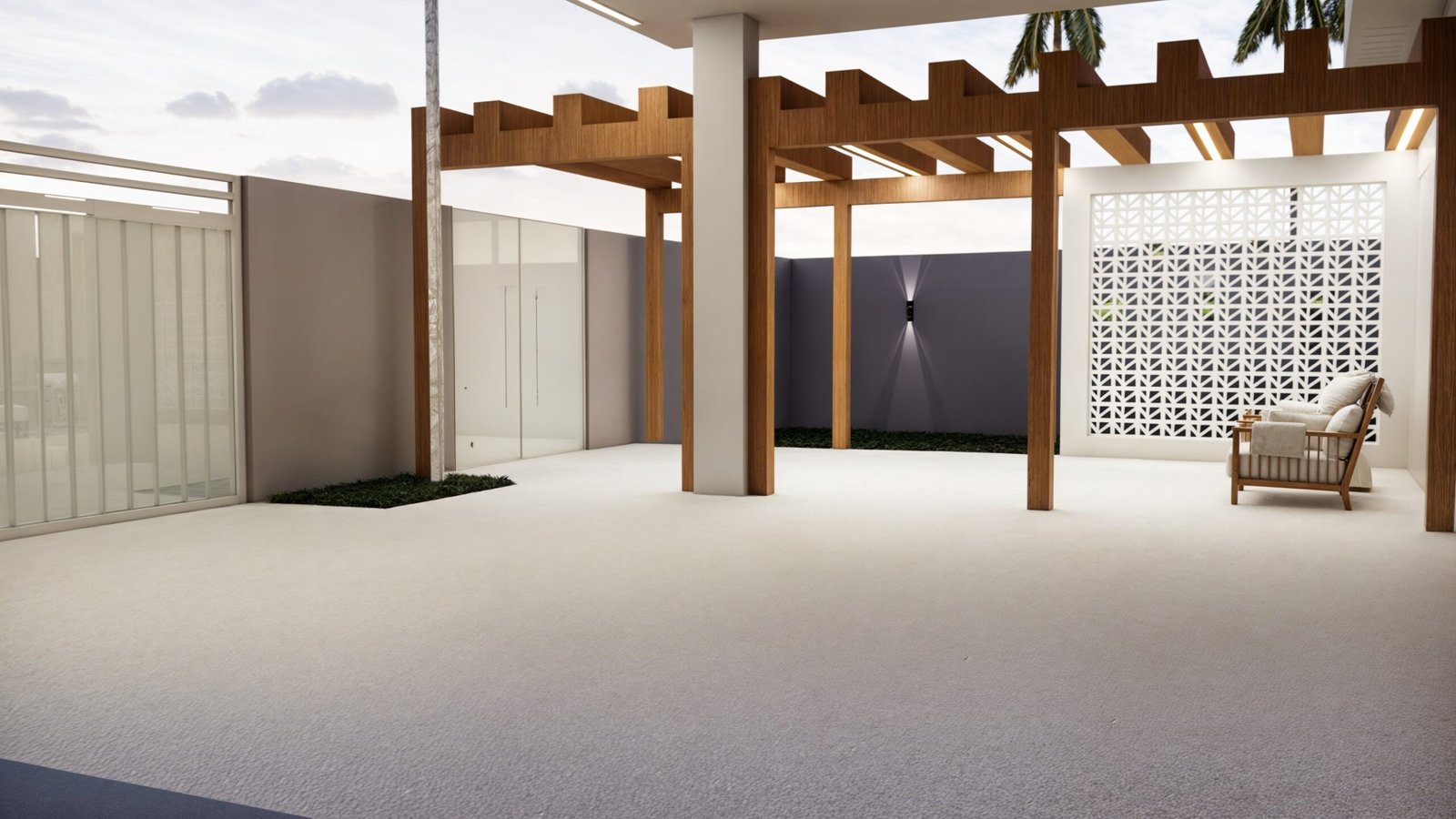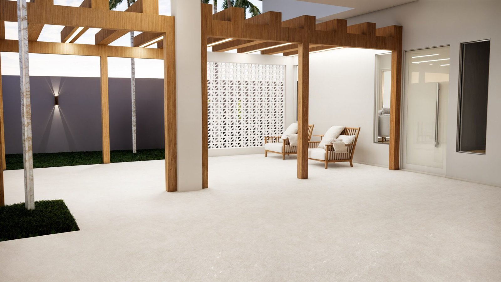 O desejo da cliente era integrar os espaços internos da residência e criar uma fachada, com maior privacidade, porém com uma estética agradável.