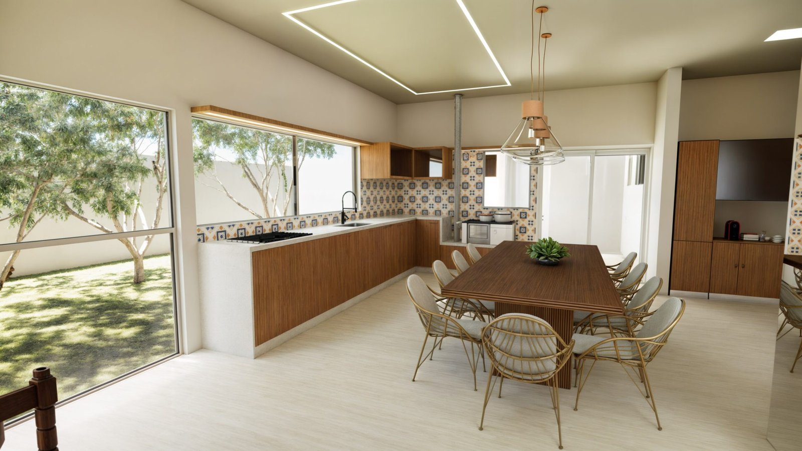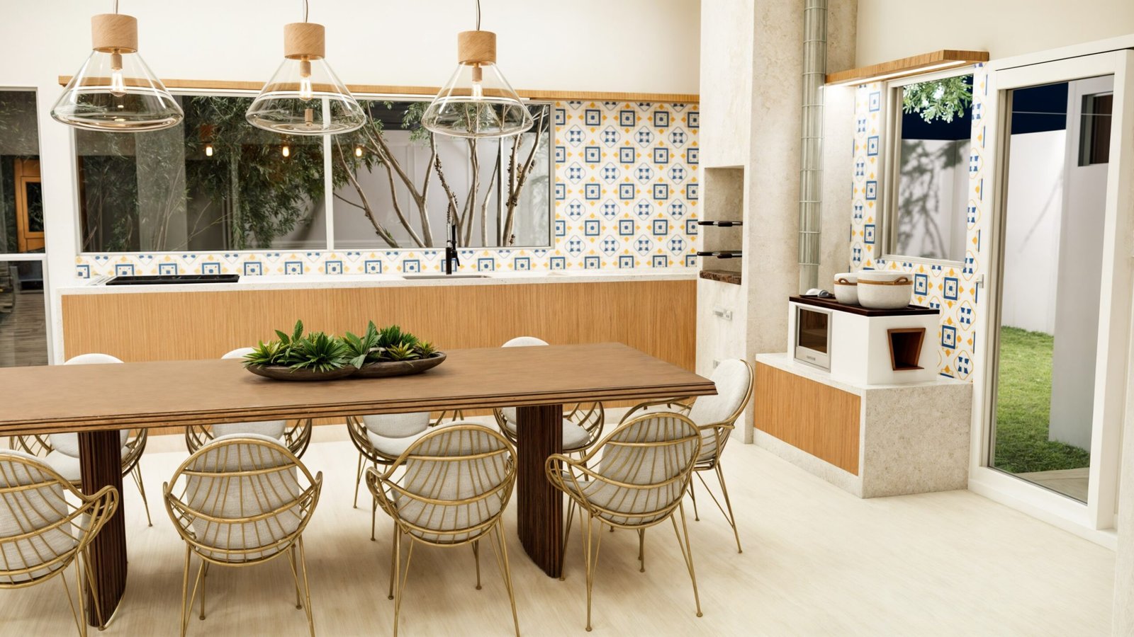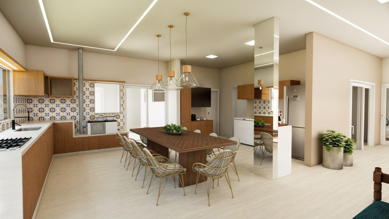 • Integração e Ampliação: Incorporamos a varanda existente ao corpo da casa, ampliando os espaços, especialmente a cozinha gourmet, tornando-a mais funcional e confortável.