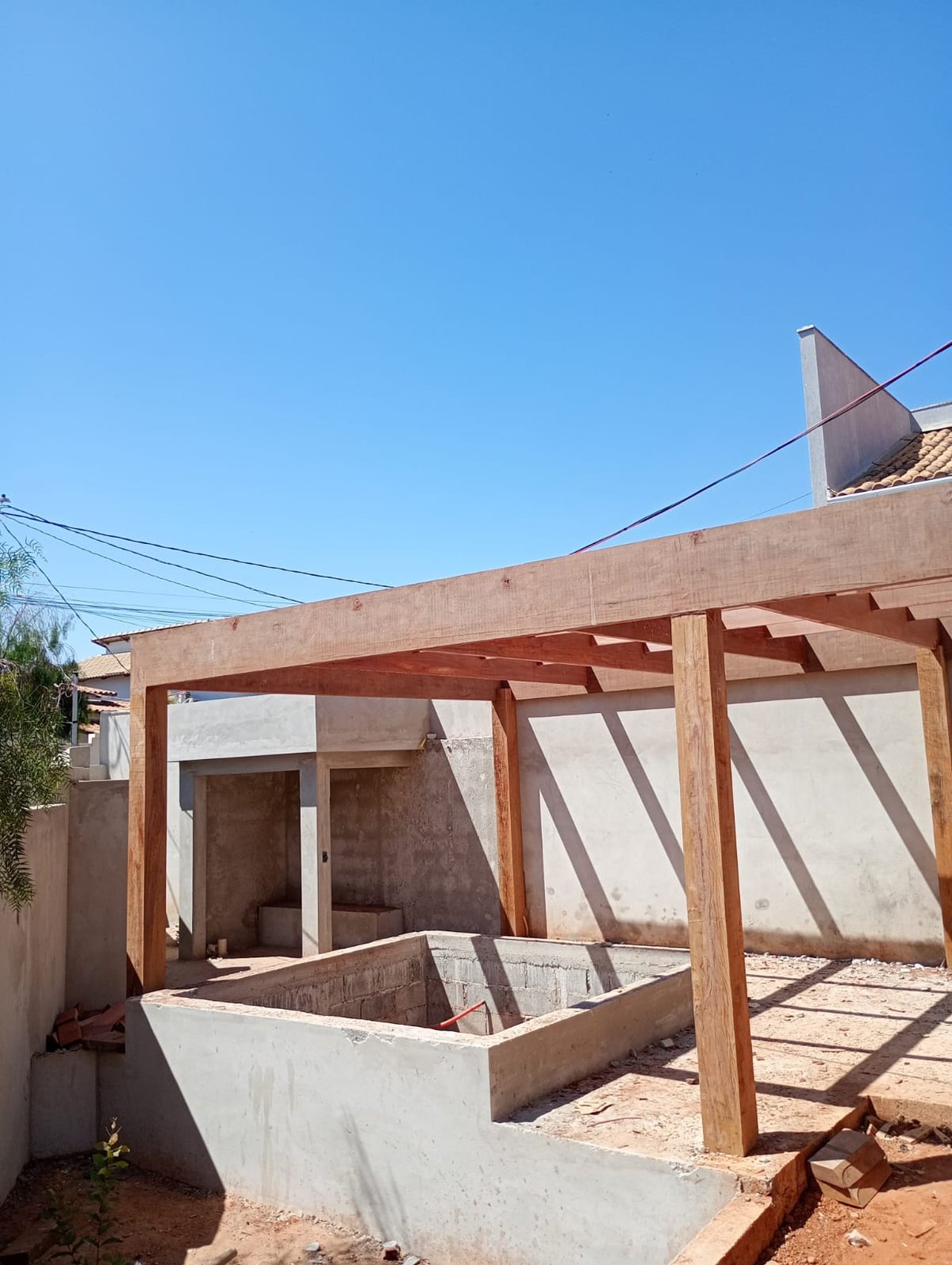 • Melhoria na Ventilação e Iluminação: Para garantir uma casa mais arejada, aumentamos o pé direito da varanda e substituímos o telhado anterior por uma moderna telha termoacústica embutida, aprimorando tanto a ventilação quanto a estética.