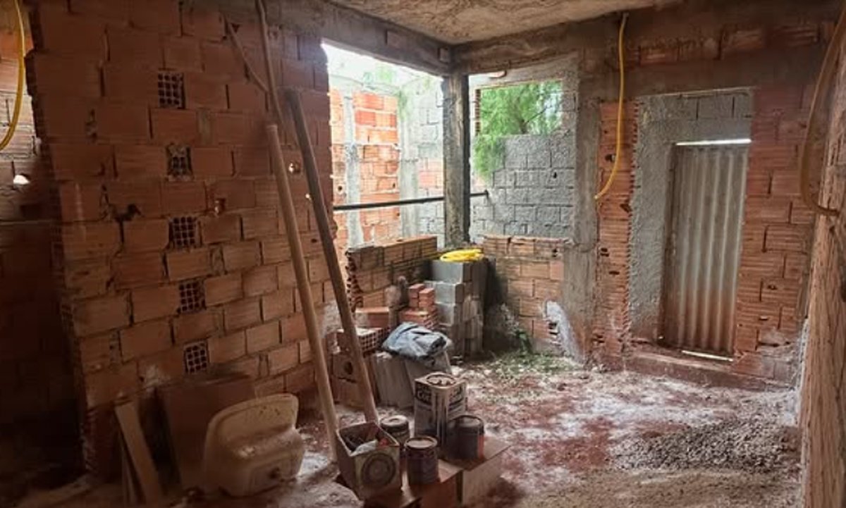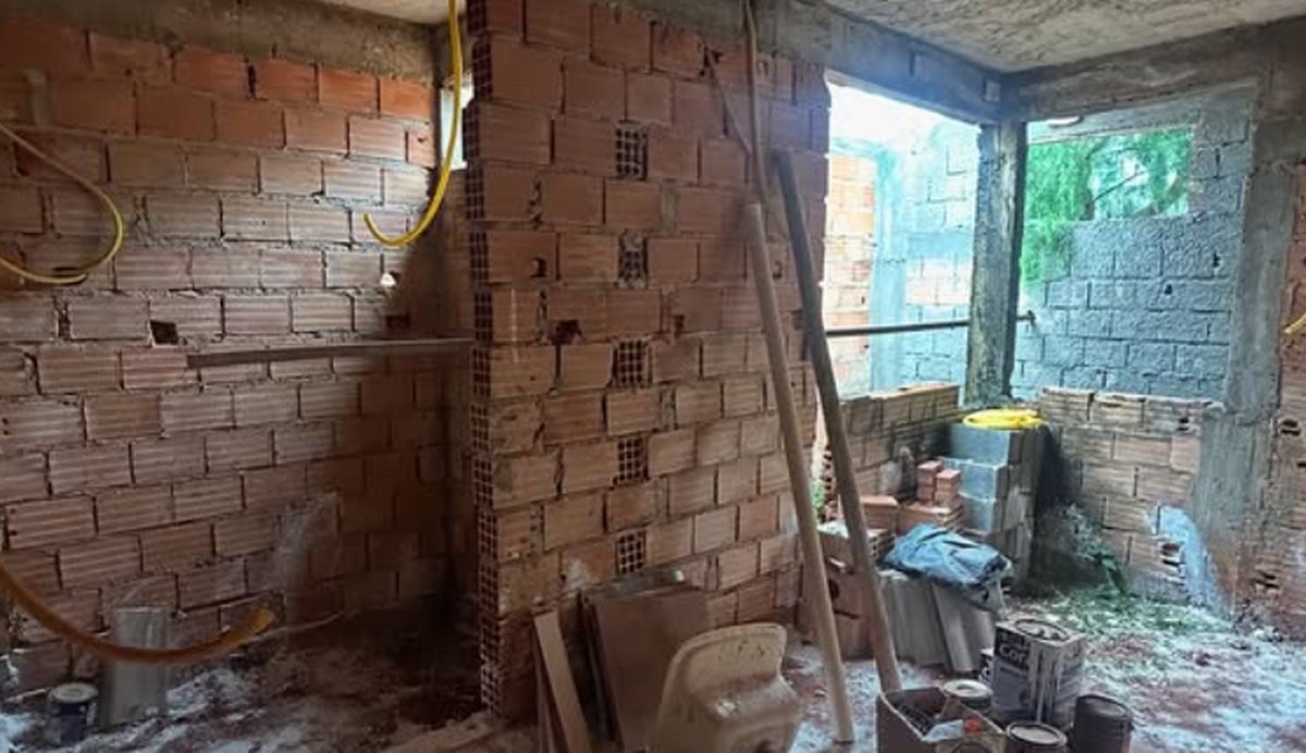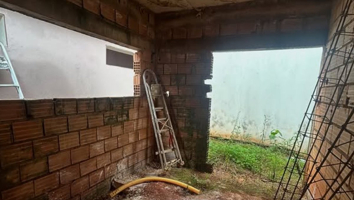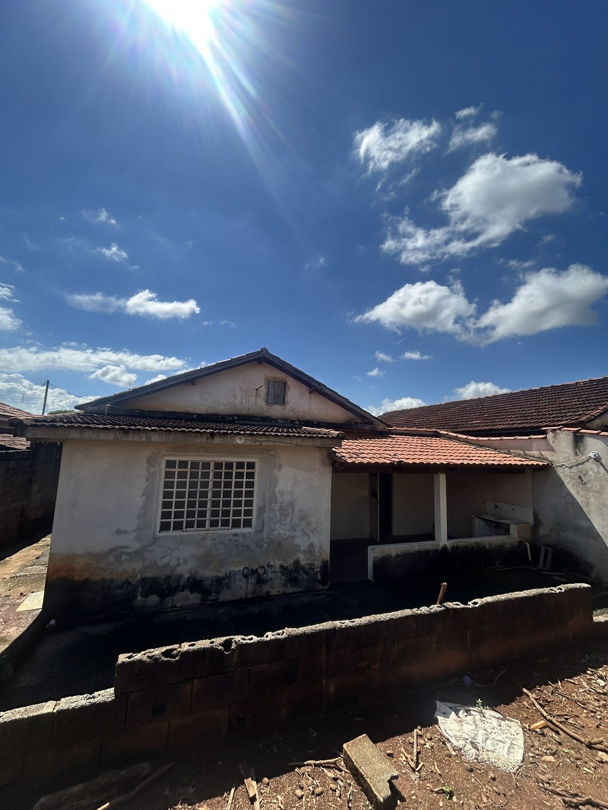 Antes do projeto, esta era uma casa que estava em fase de obra parada, térrea, de pequeno porte, com má distribuição e pouca acessibilidade.