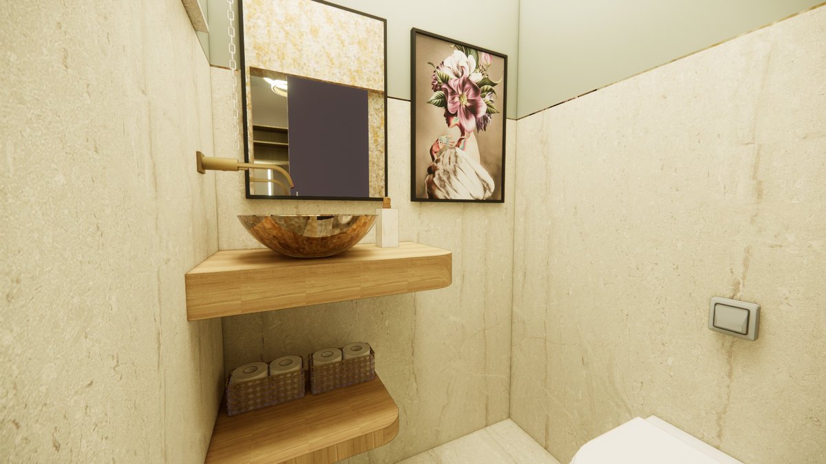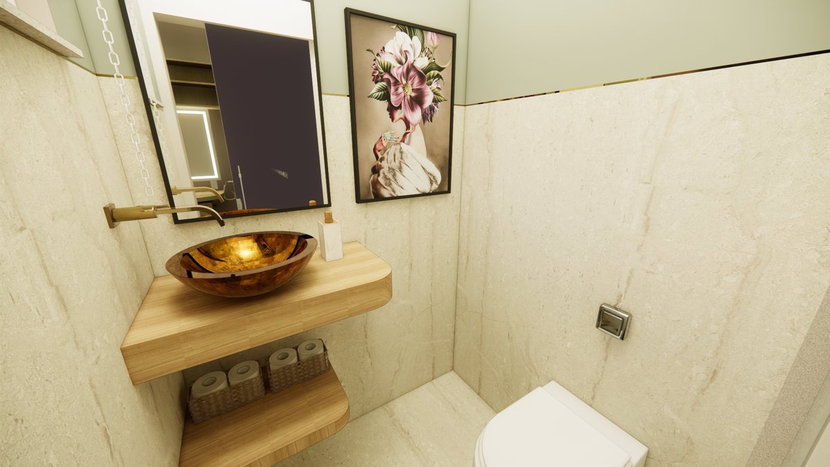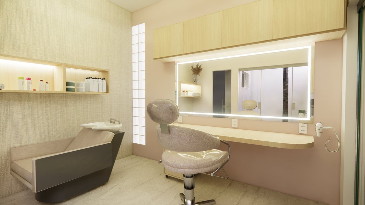 Além disso, o projeto buscou integrar os ambientes internos, criando uma sensação de espaço mais fluido e harmonioso. Dentro dessa integração, foi planejada uma sala com escritório e biblioteca, ideal para o trabalho da professora e também para momentos de relaxamento.