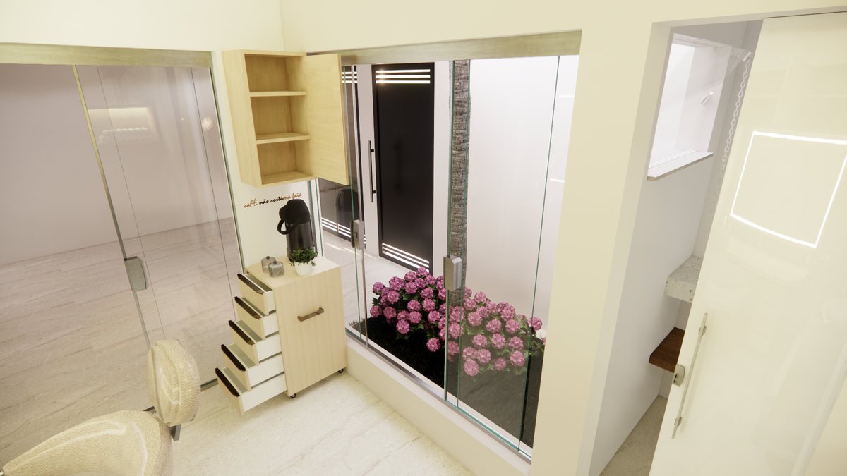 Projeto de reforma residencial onde o principal objetivo da cliente foi aumentar a visibilidade da varanda frontal para a rua, ou seja, tornar essa área mais aberta e com uma vista mais ampla, mas ao mesmo tempo, sem comprometer sua privacidade. Para isso, foi realizada uma solução arquitetônica que equilibra esses dois aspectos.