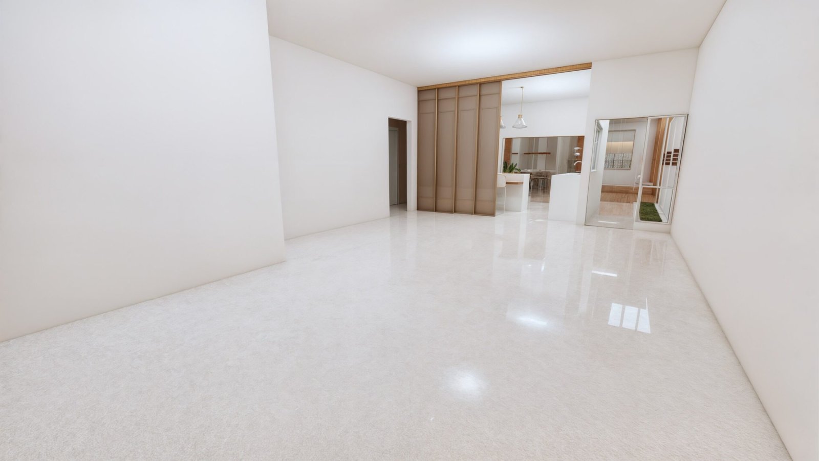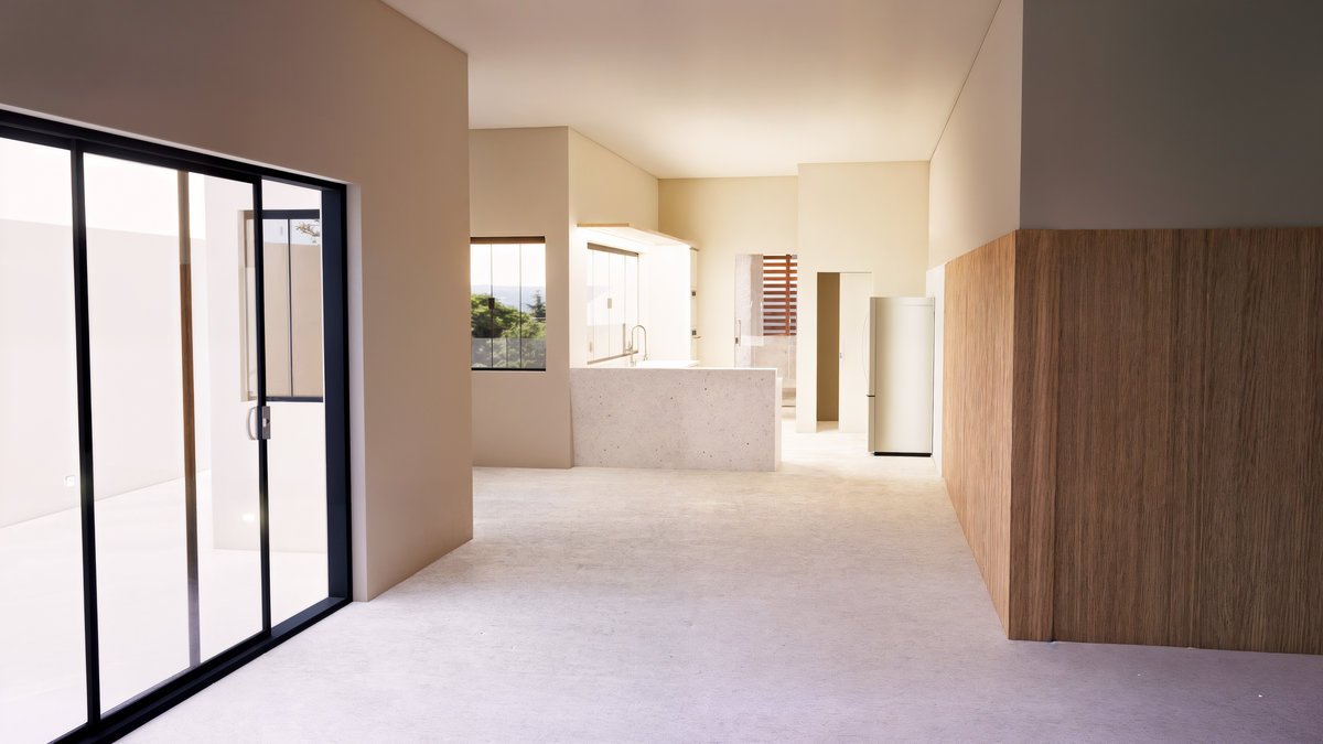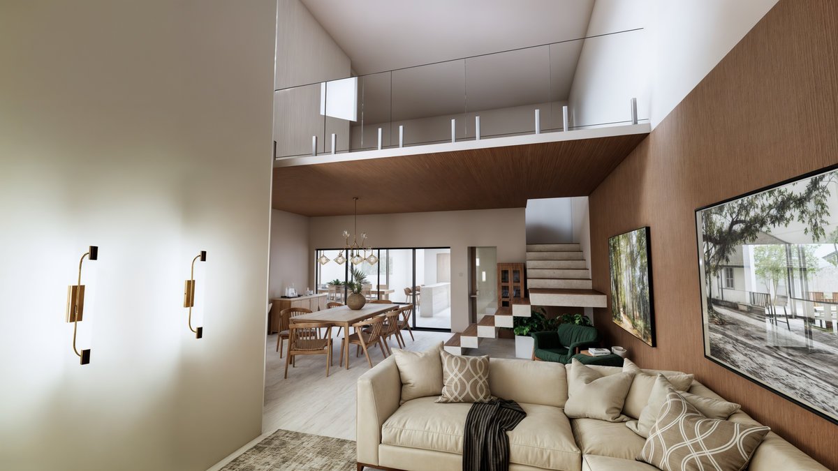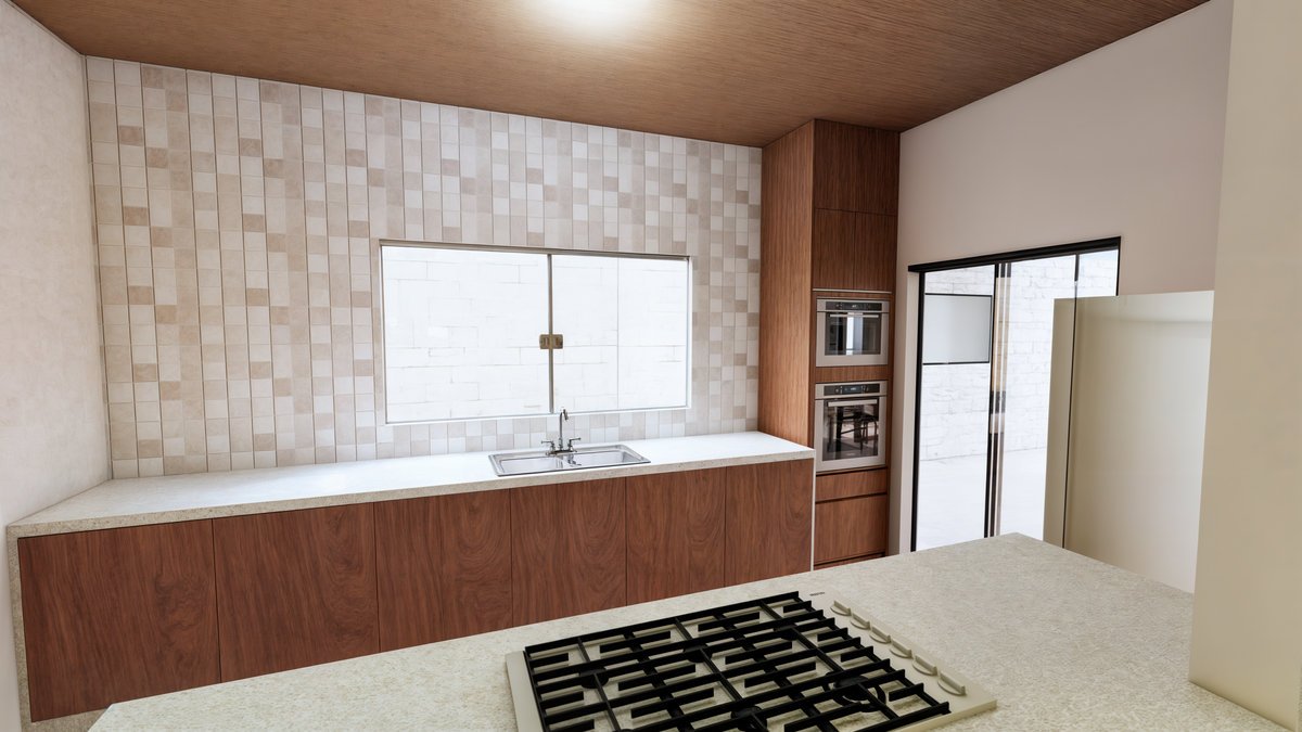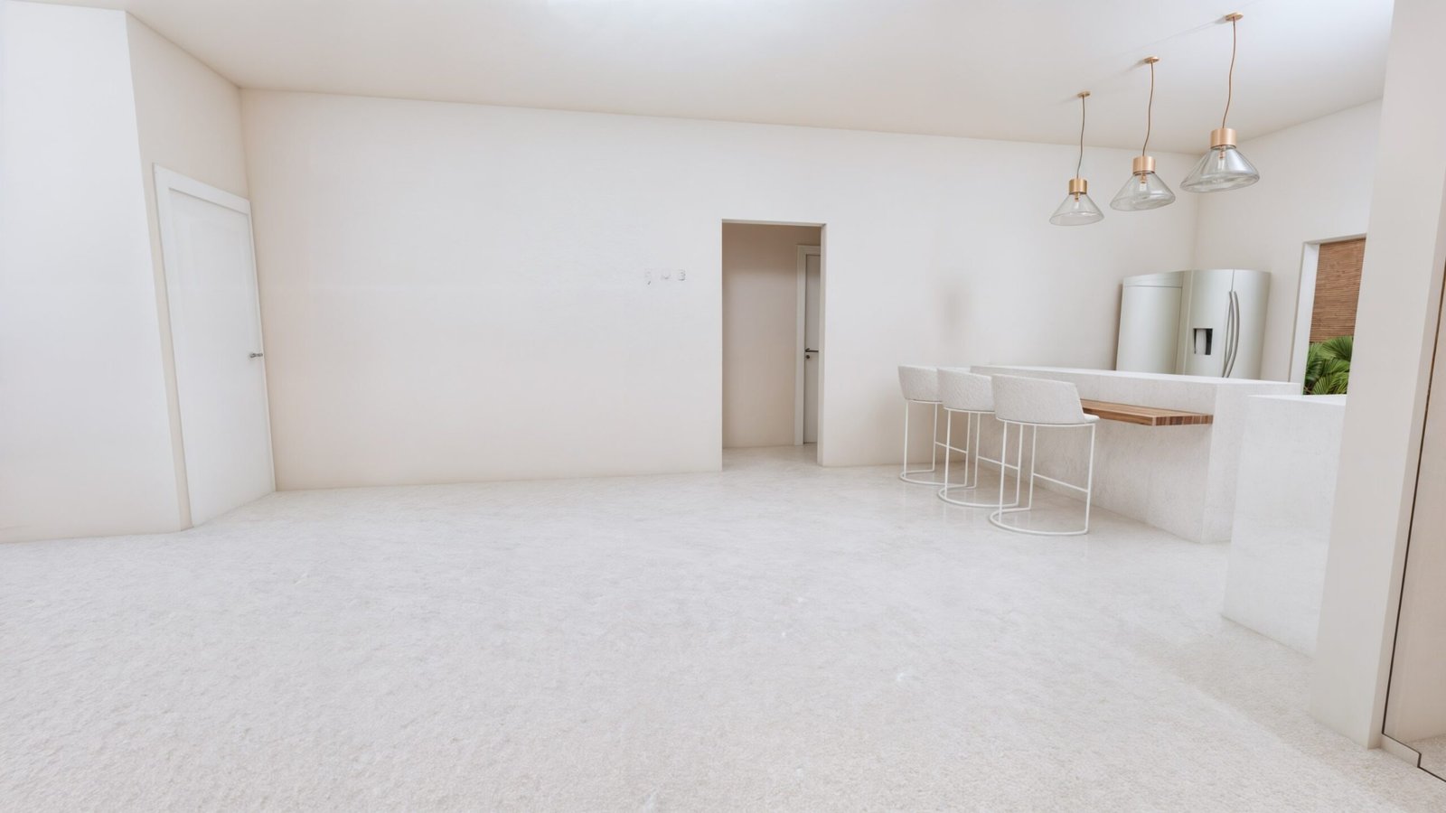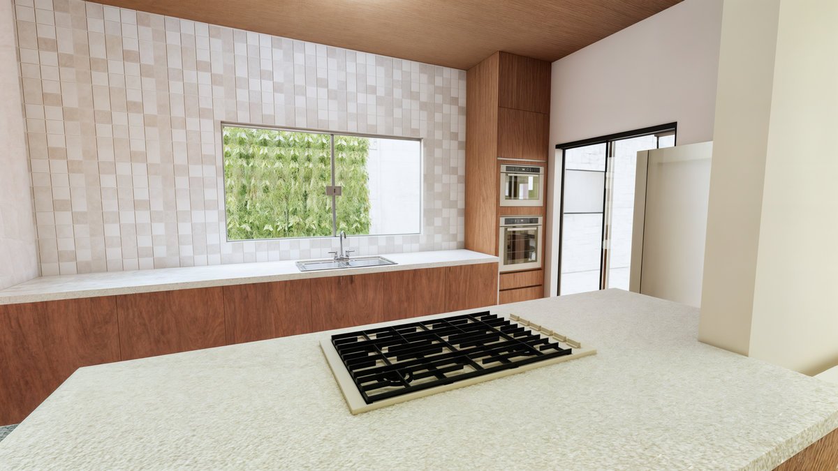 A solicitação dos nossos clientes era uma casa com três quartos, sendo uma suíte, sala integrada, cozinha, espaço gourmet e lavanderia.