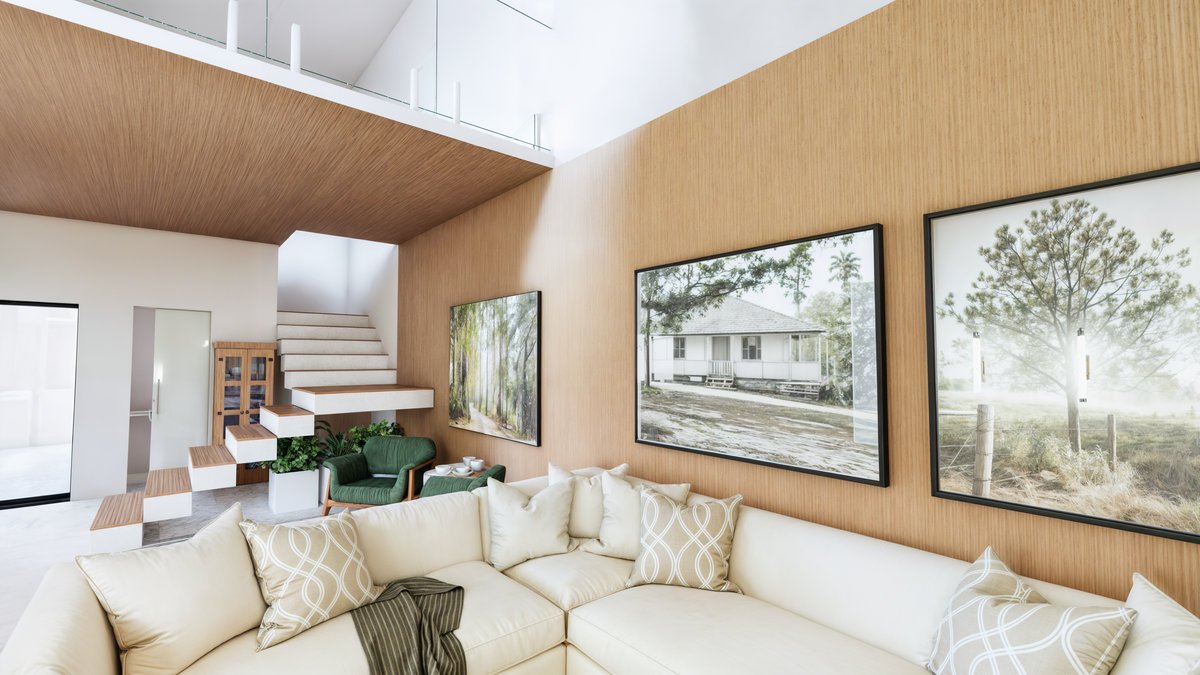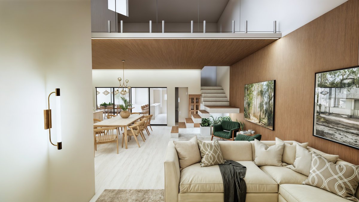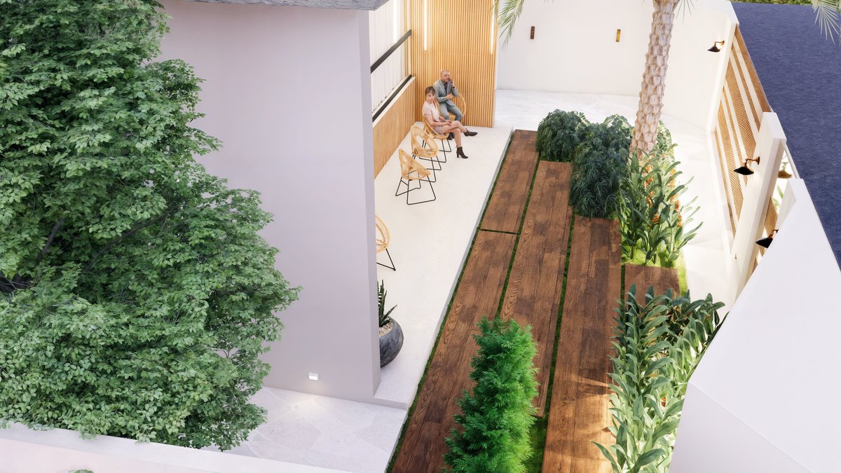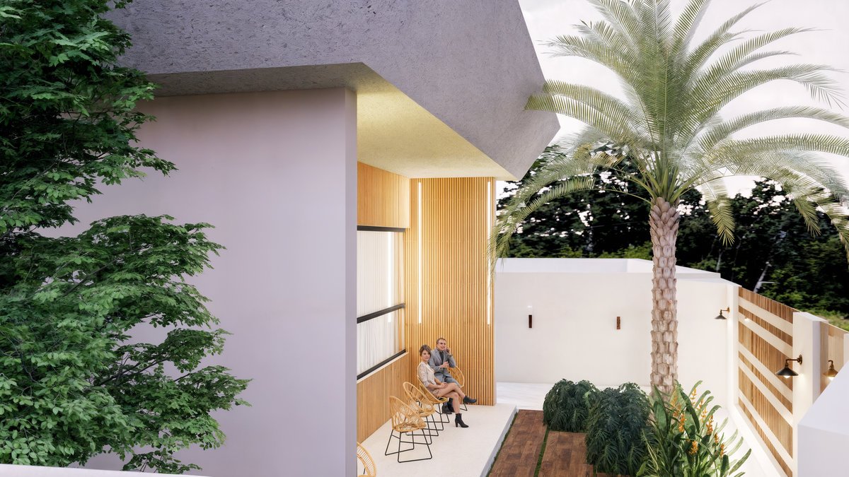 Os quartos foram posicionado a para o sol da manhã, com uma varanda privativa no fundo do lote.