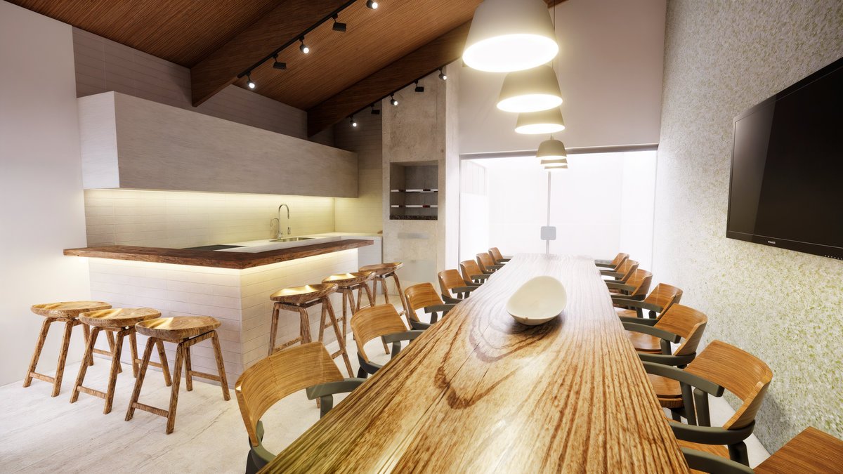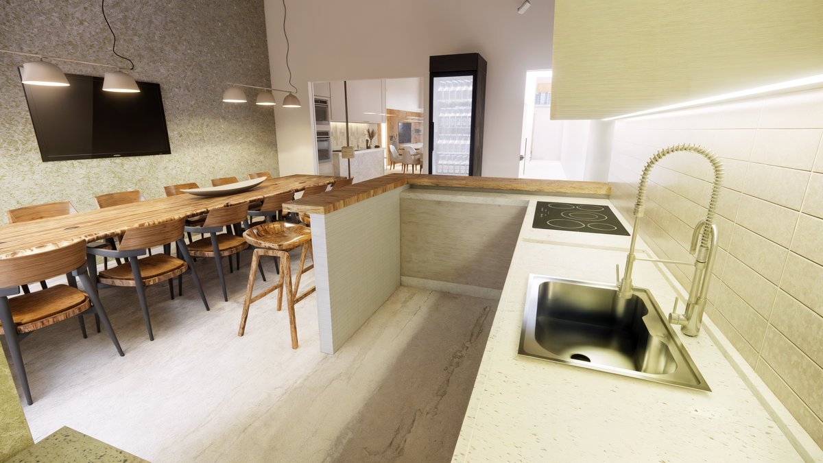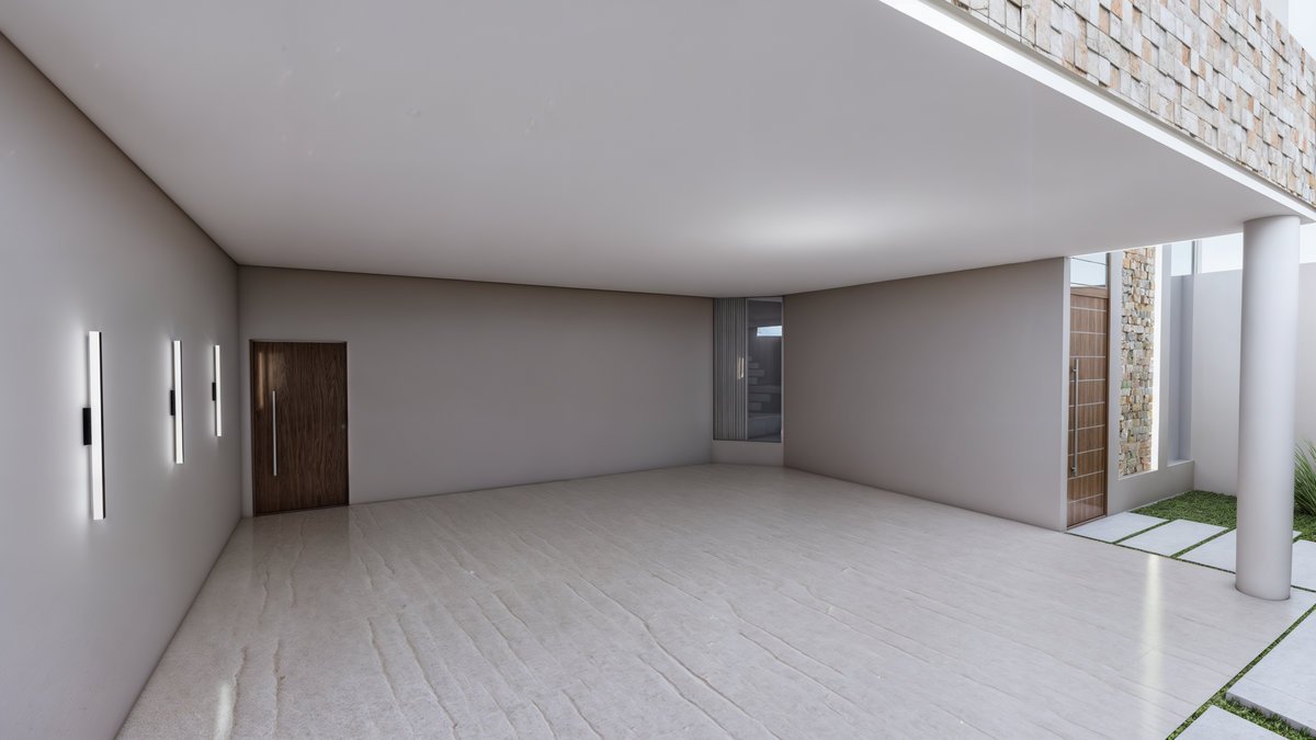 Nossos queridos clientes nos solicitaram uma residência térrea, onde o pé-direito fosse único em toda a arquitetura, sem a existência de pé-direto duplo. Solicitaram também uma sala ampla, integrada com a cozinha e um espaço gourmet igualmente espaçoso, dentro das possibilidades do lote.